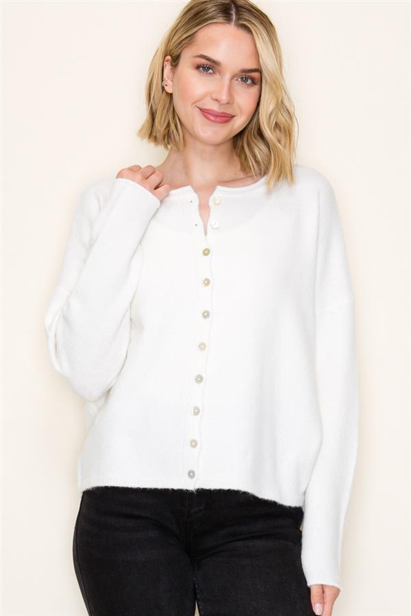 Meet the layering MVP your cold-weather wardrobe’s been waiting for. The Gemma Crew Neck Button Down Sweater is classic, cozy + so versatile. With its button front and rolled edge detailing, this neutral beauty is equal parts timeless and on-trend.
