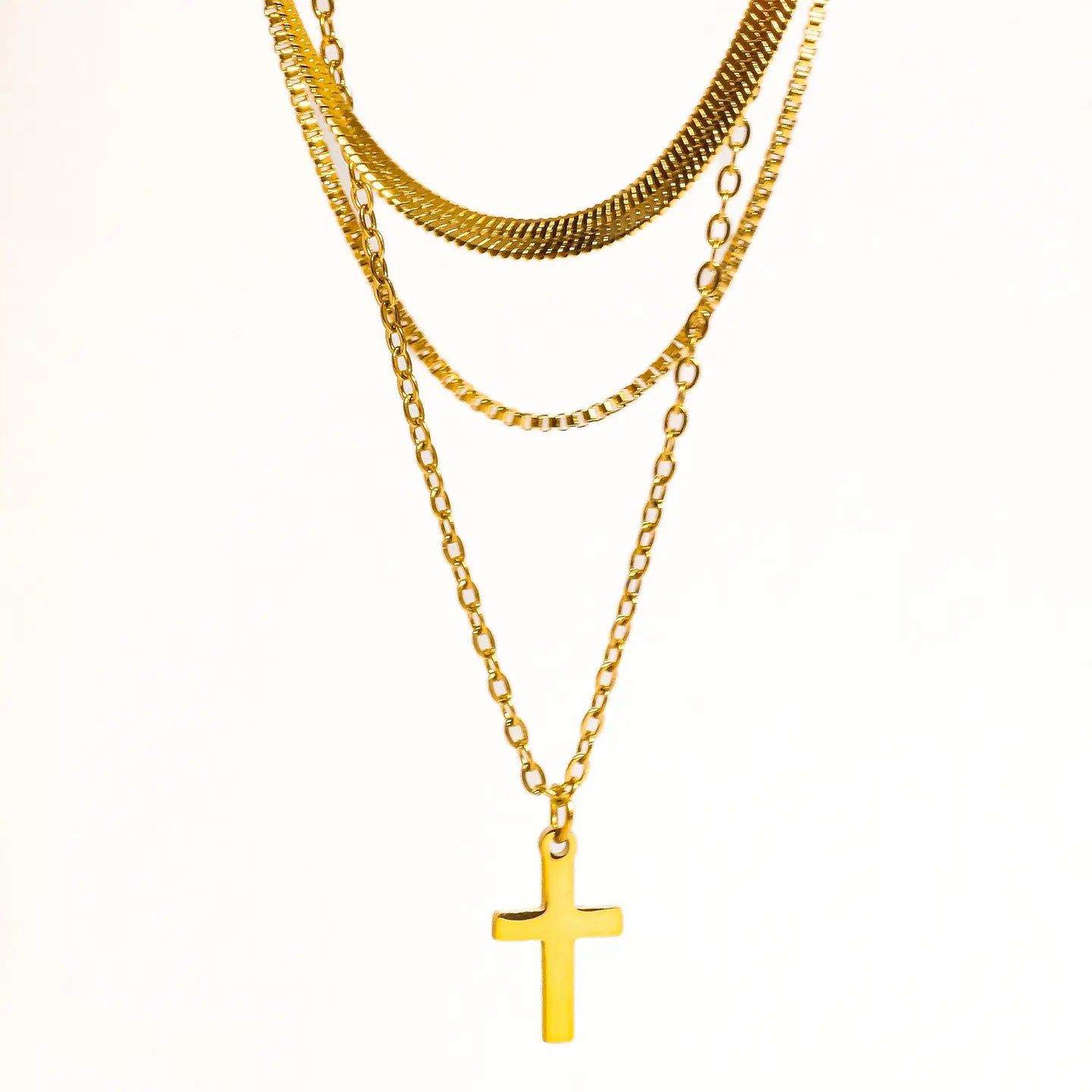 The Georgine 18K Gold Plated Layered Cross Necklace is a timeless layering staple with just the right amount of meaning. Featuring a trio of delicate gold chains finished with a classic cross pendant, this piece adds effortless polish to everyday outfits while still feeling special.