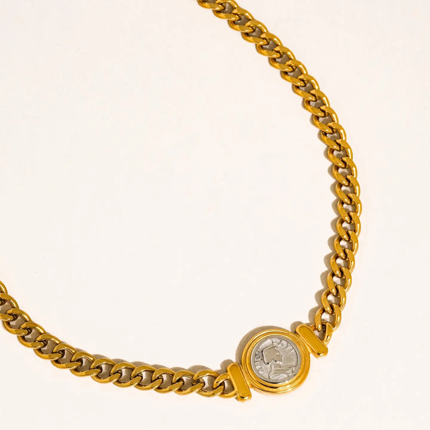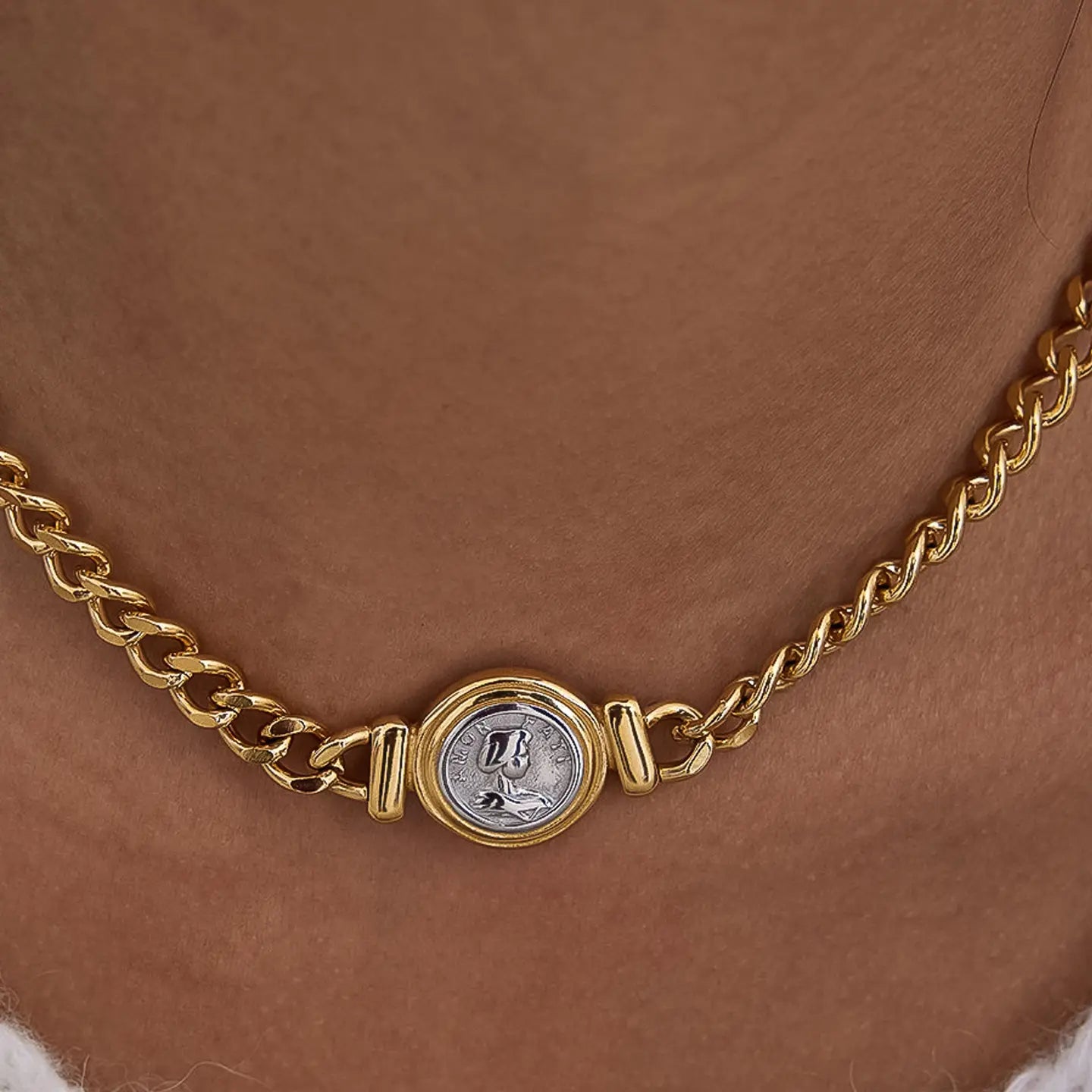 The Parisse Mixed Metal Coin Necklace is a bold yet timeless statement piece that instantly elevates any look. With its classic chain design + vintage-inspired coin detail, this necklace brings just the right mix of modern edge + everyday sophistication.