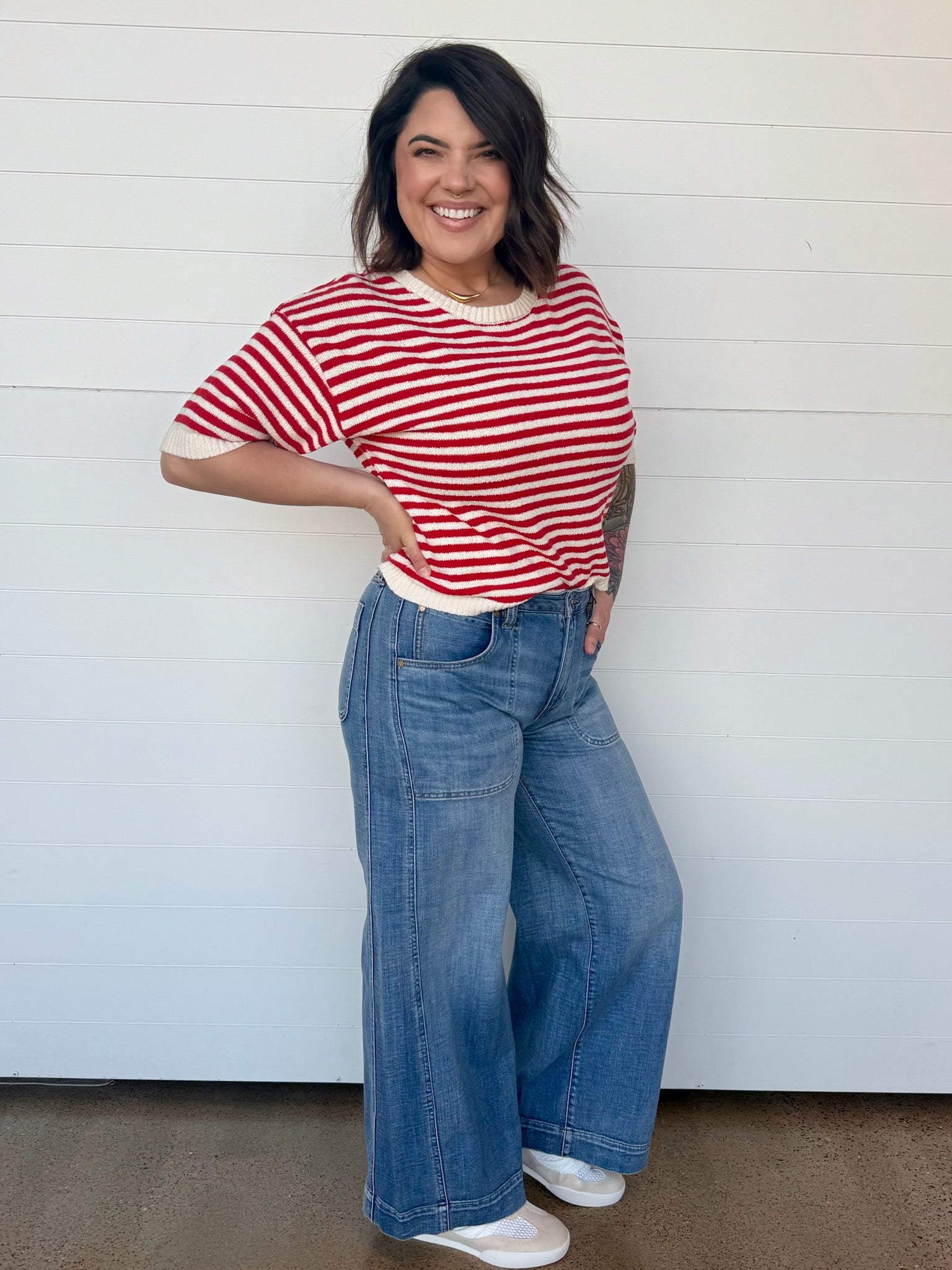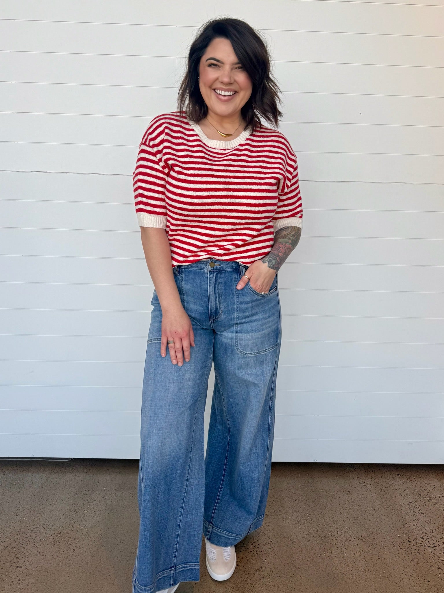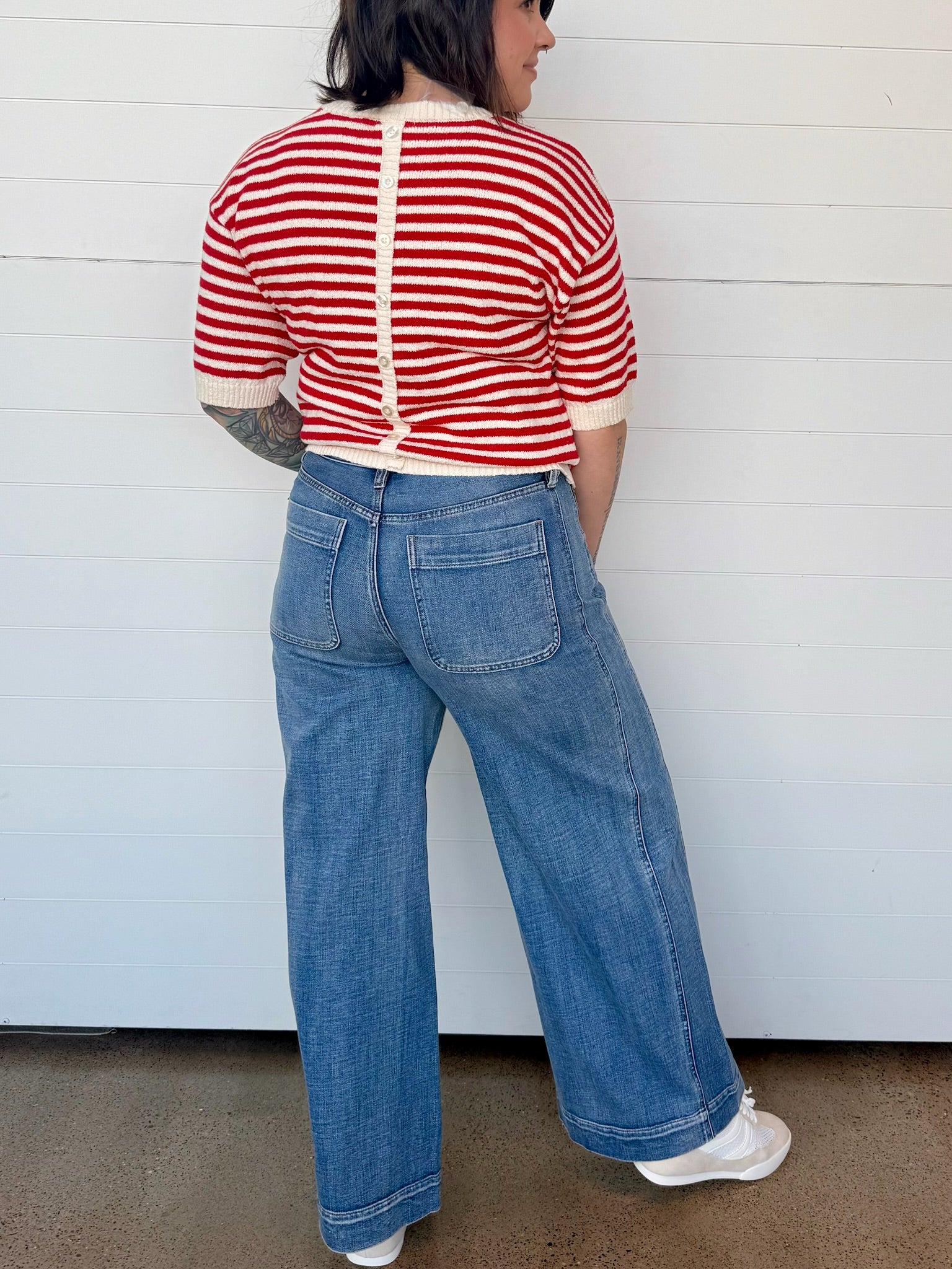 Liverpool Stride Wide Leg Utility Pocket Jeans Women’s Wide Leg Relaxed Fit Full Length Utility Pocket Denim Jeans One:Nine Boutique