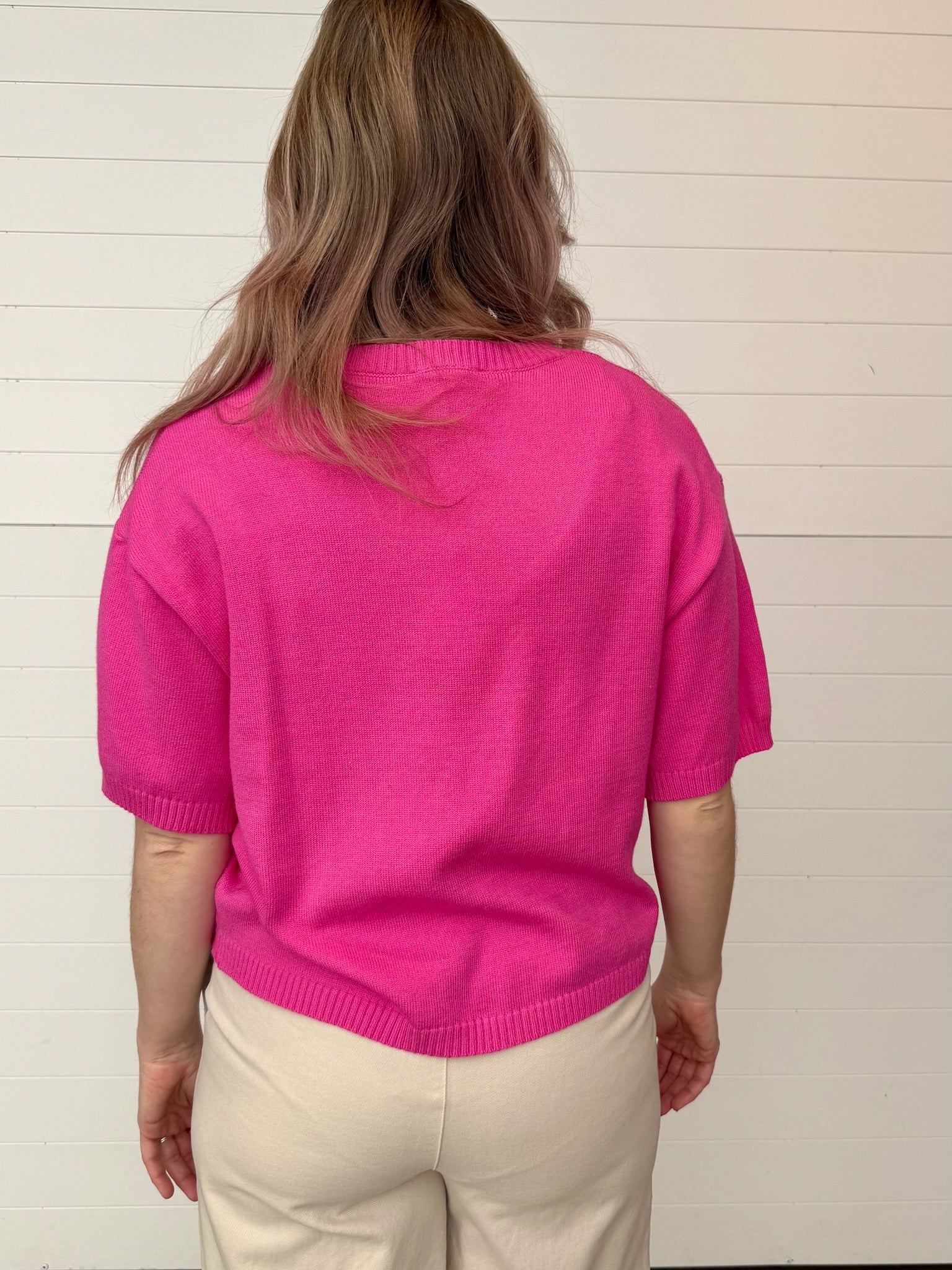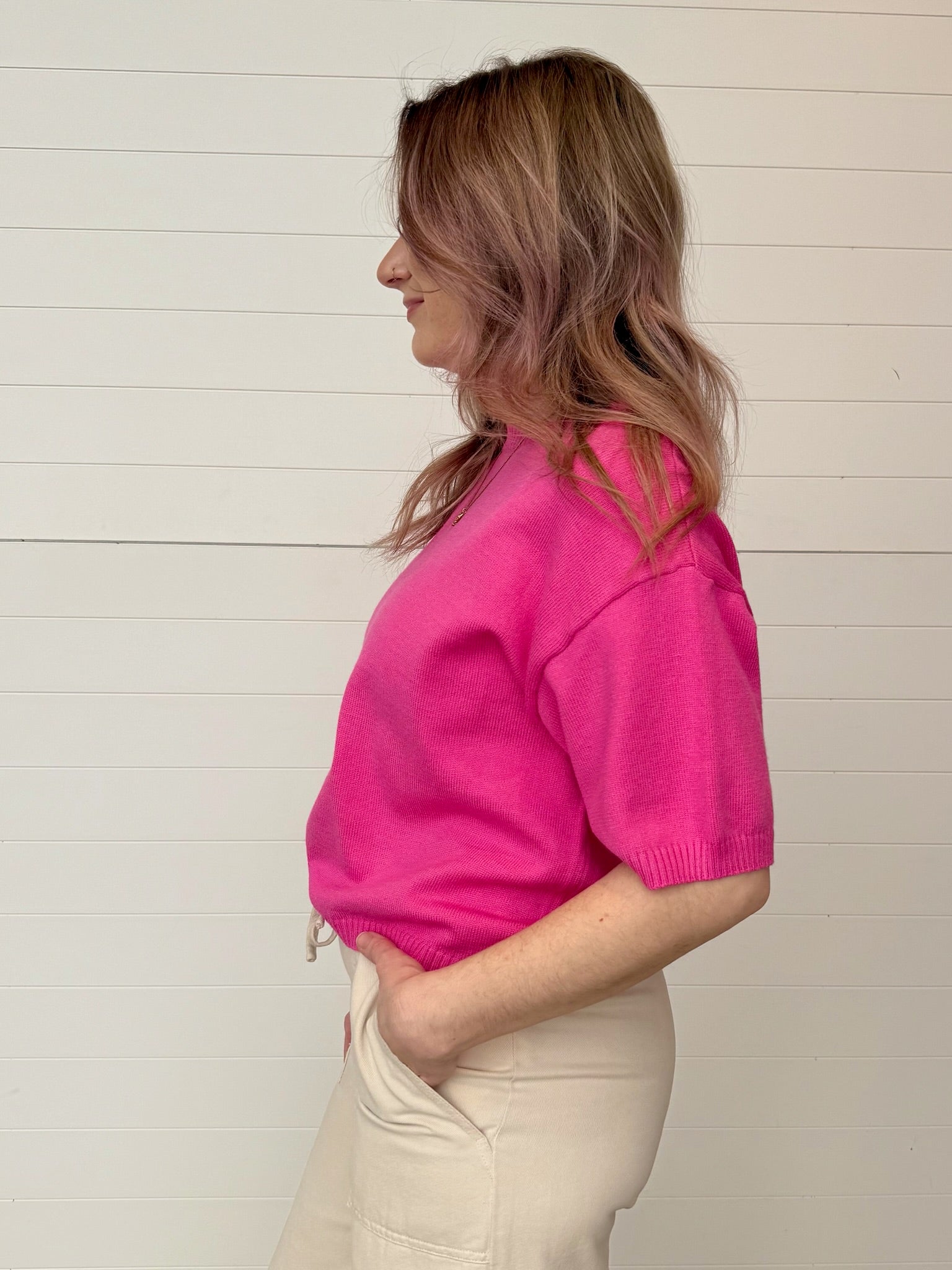 Say hello to your new not-too-hot, not-too-cold layering piece — The Arden Short Sleeve Sweater. With its oversized fit, soft knit texture + relaxed sleeves, this lightweight sweater brings the perfect mix of cozy + cool. The fresh periwinkle hue adds a subtle pop of color while keeping things easy to style. Dress it up with trousers or keep it laid-back with denim shorts — it’s a year-round favorite in the making.