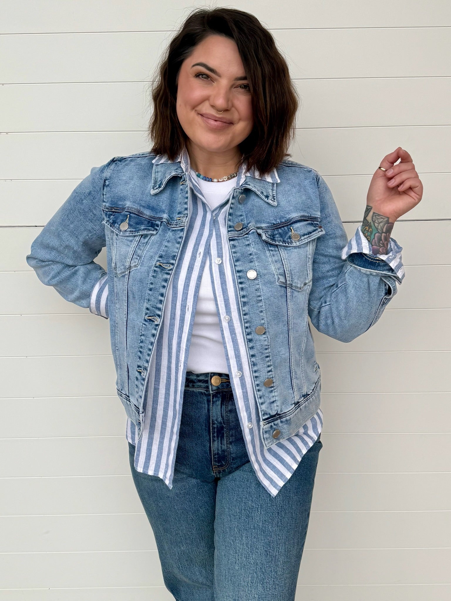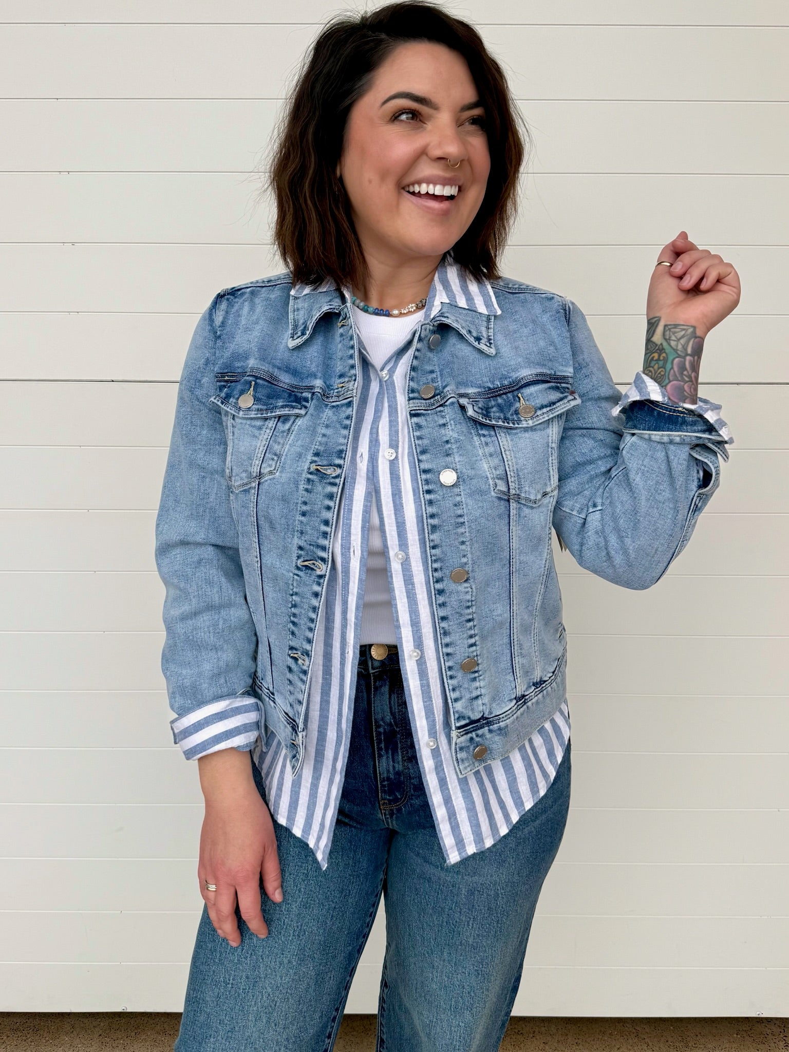 Liverpool Sarah Classic Jean Jacket | Women’s Timeless Denim Jacket for Everyday Layering | Closet Staple Outerwear | One:Nine Boutique