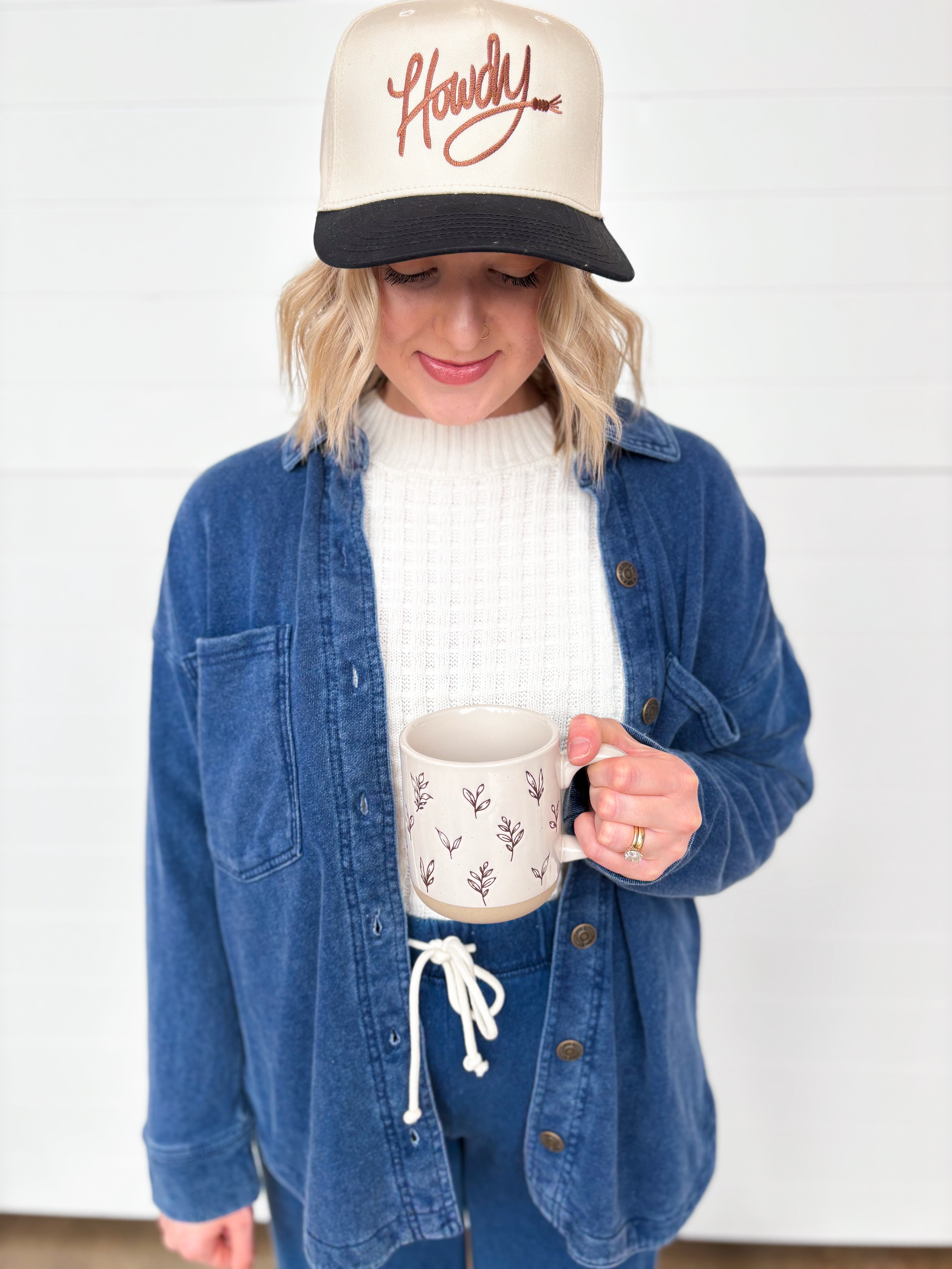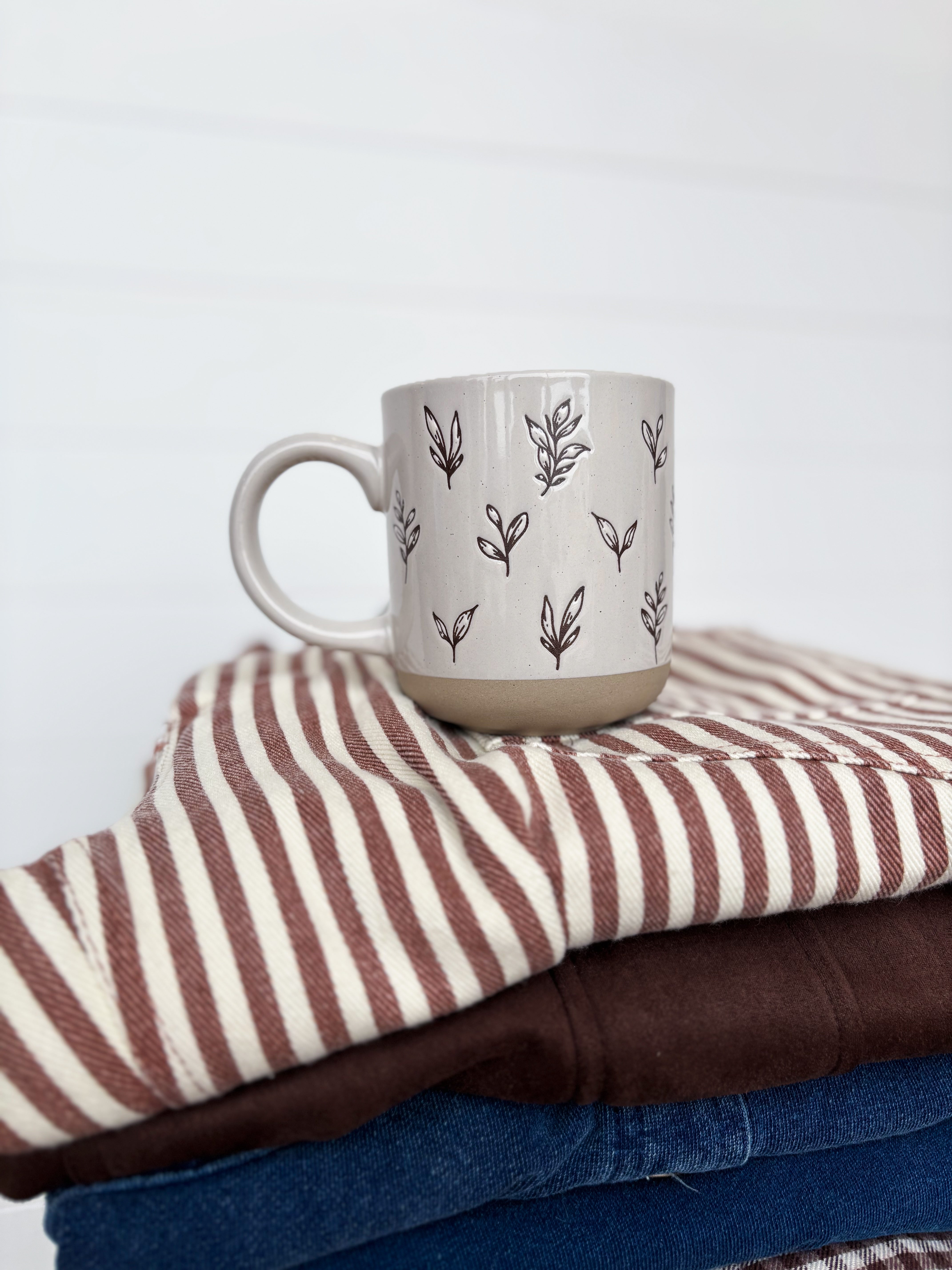 Clea Brown Leaves Stoneware Mug – Rustic Coffee + Tea Cup | One:Nine Boutique