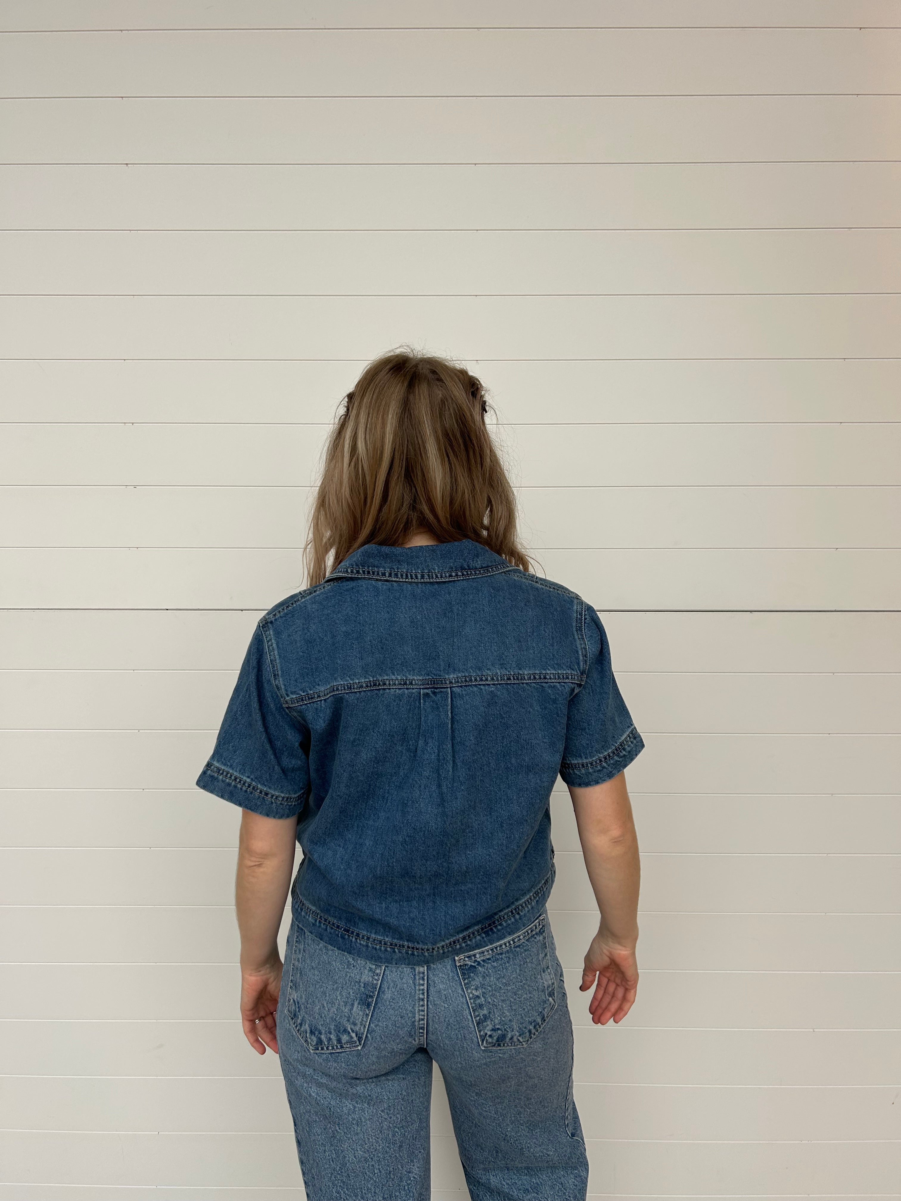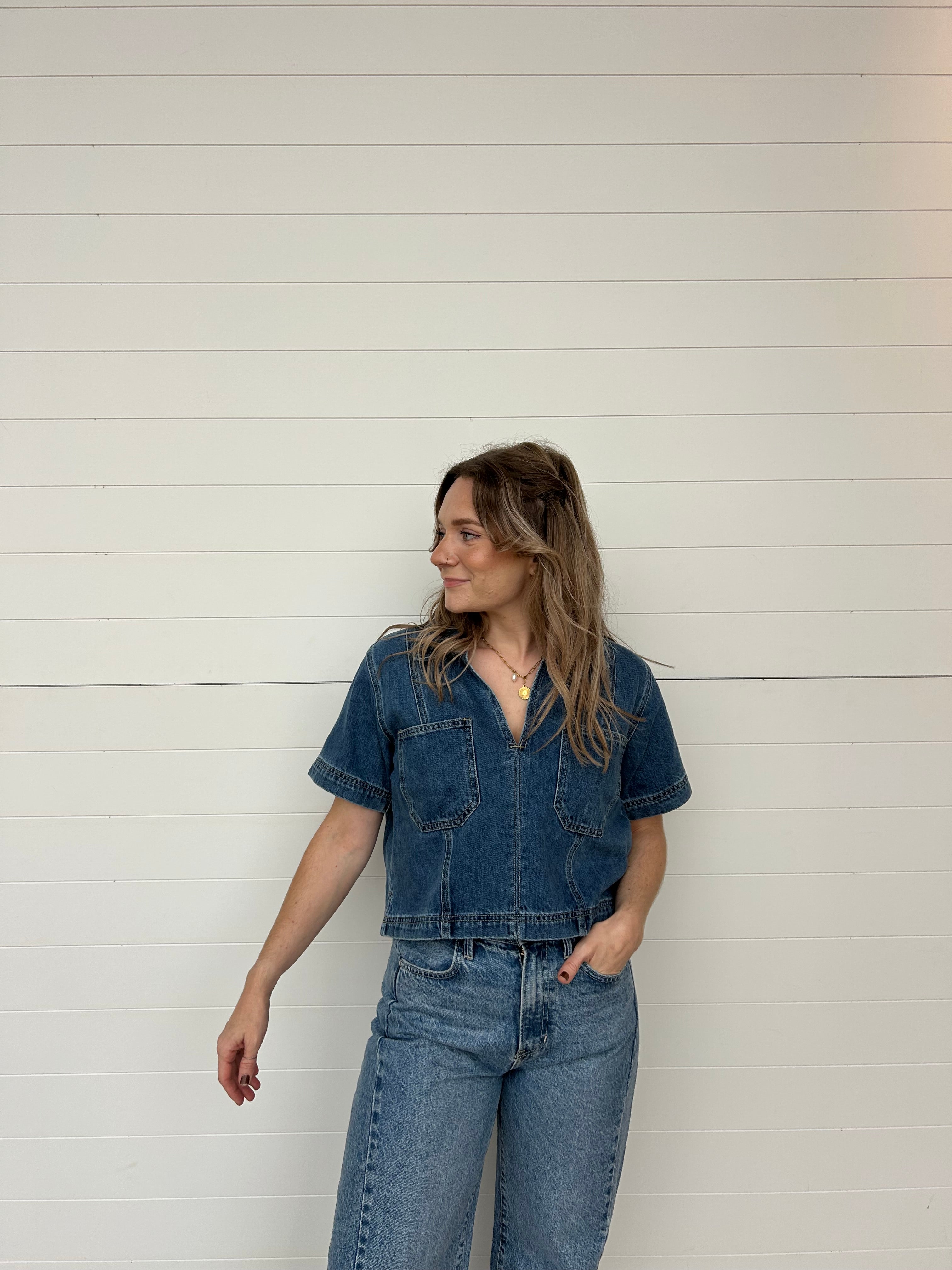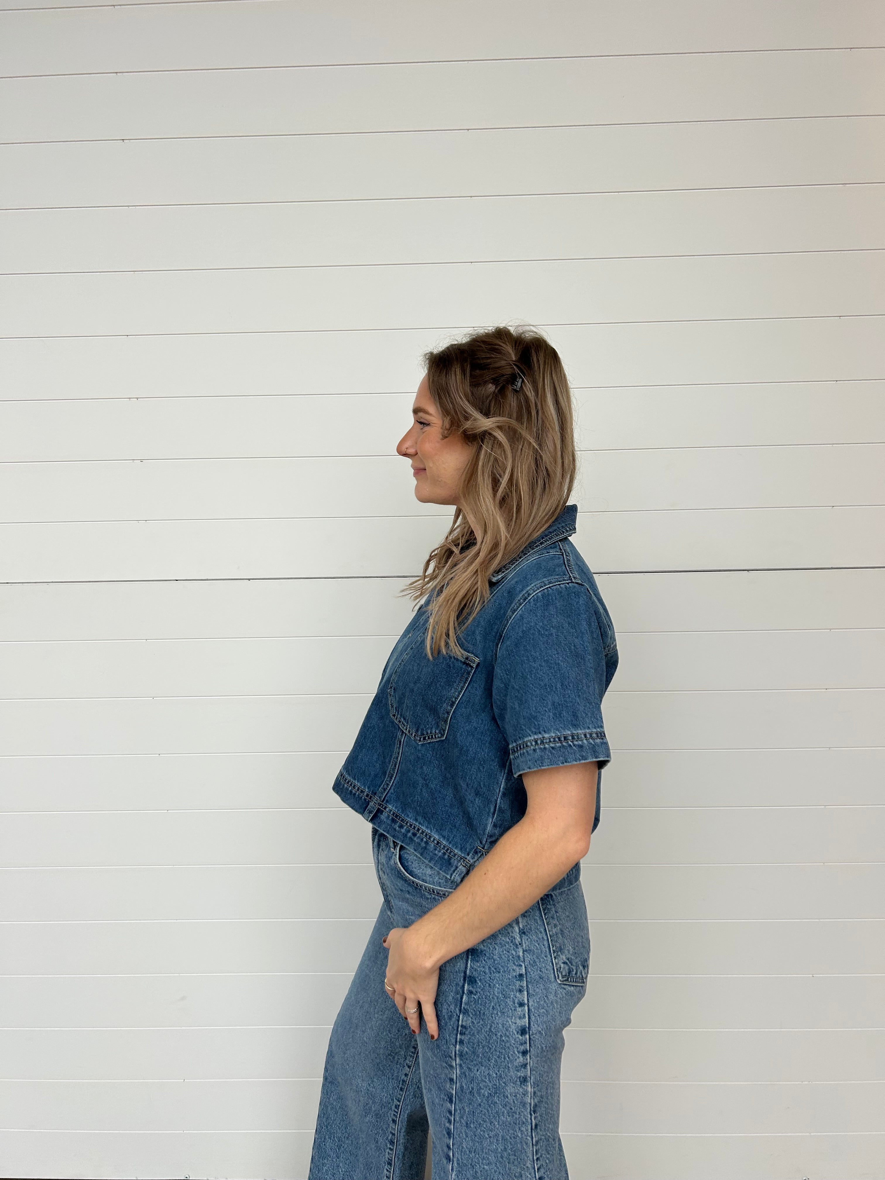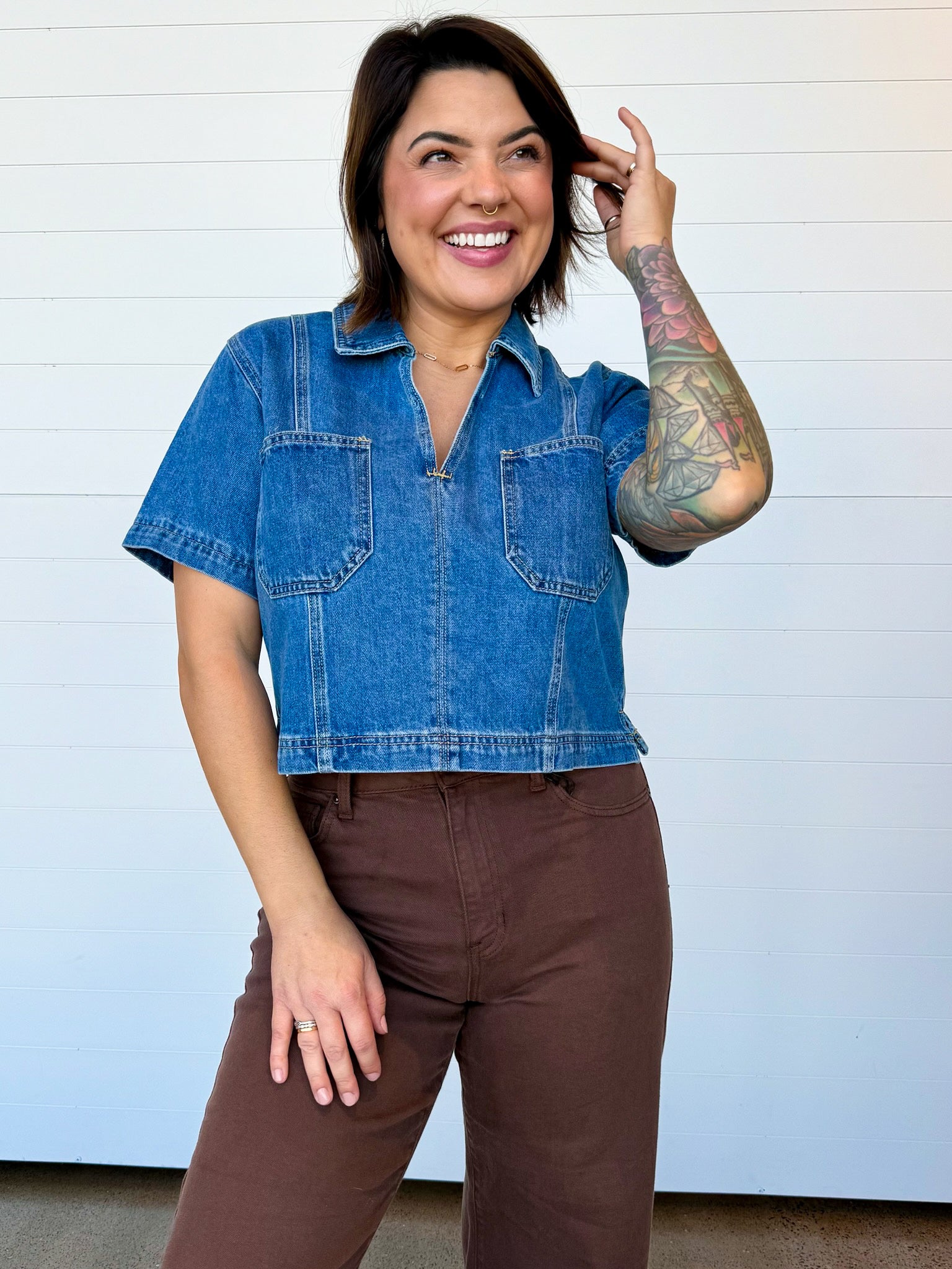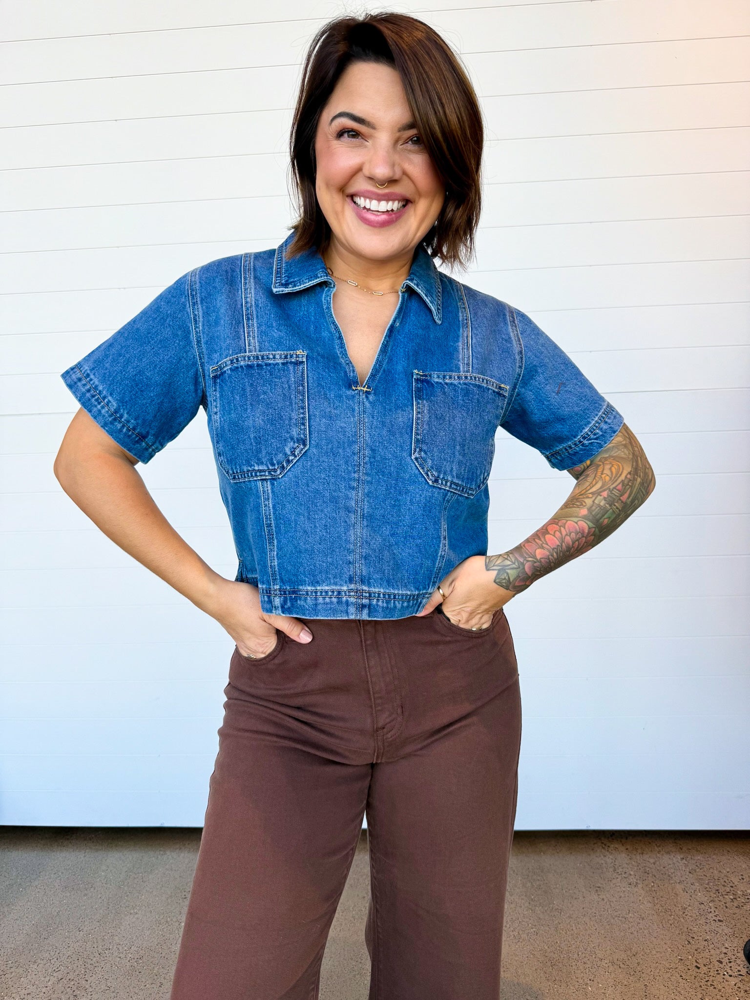 The Cassidy Boxy Collared Cropped Denim Top is where vintage vibes meet modern cool. With its boxy fit + cropped cut, this denim top is effortlessly stylish + versatile—perfect for layering or rocking solo. The collared neckline + front patch pockets give it a structured look while still keeping it laid-back. Dress it up with tailored trousers or keep it casual with your go-to jeans for a chic denim-on-denim look.