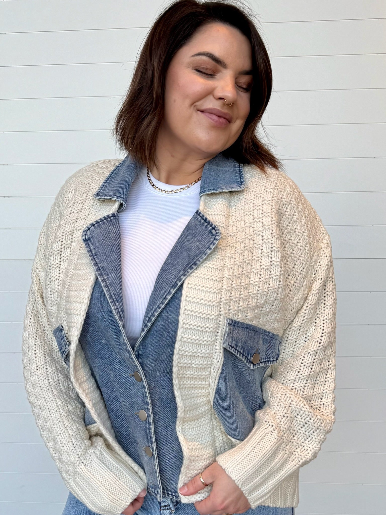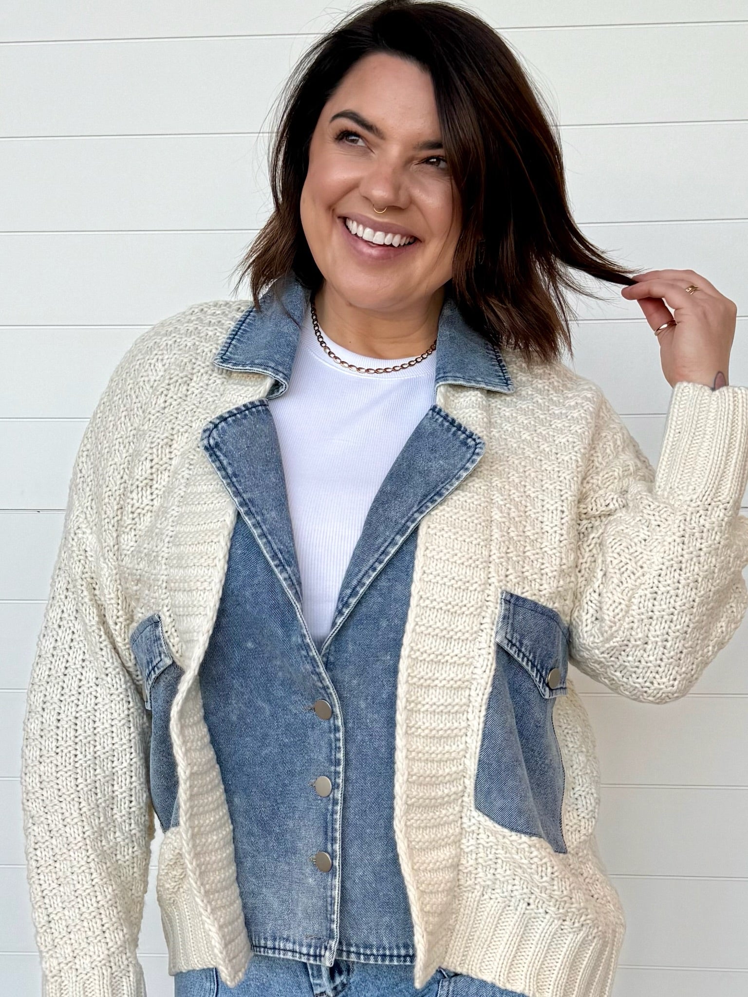 Teagan Layered Look Sweater + Jacket Combo | Women’s Knit + Denim Jacket – One:Nine Boutique