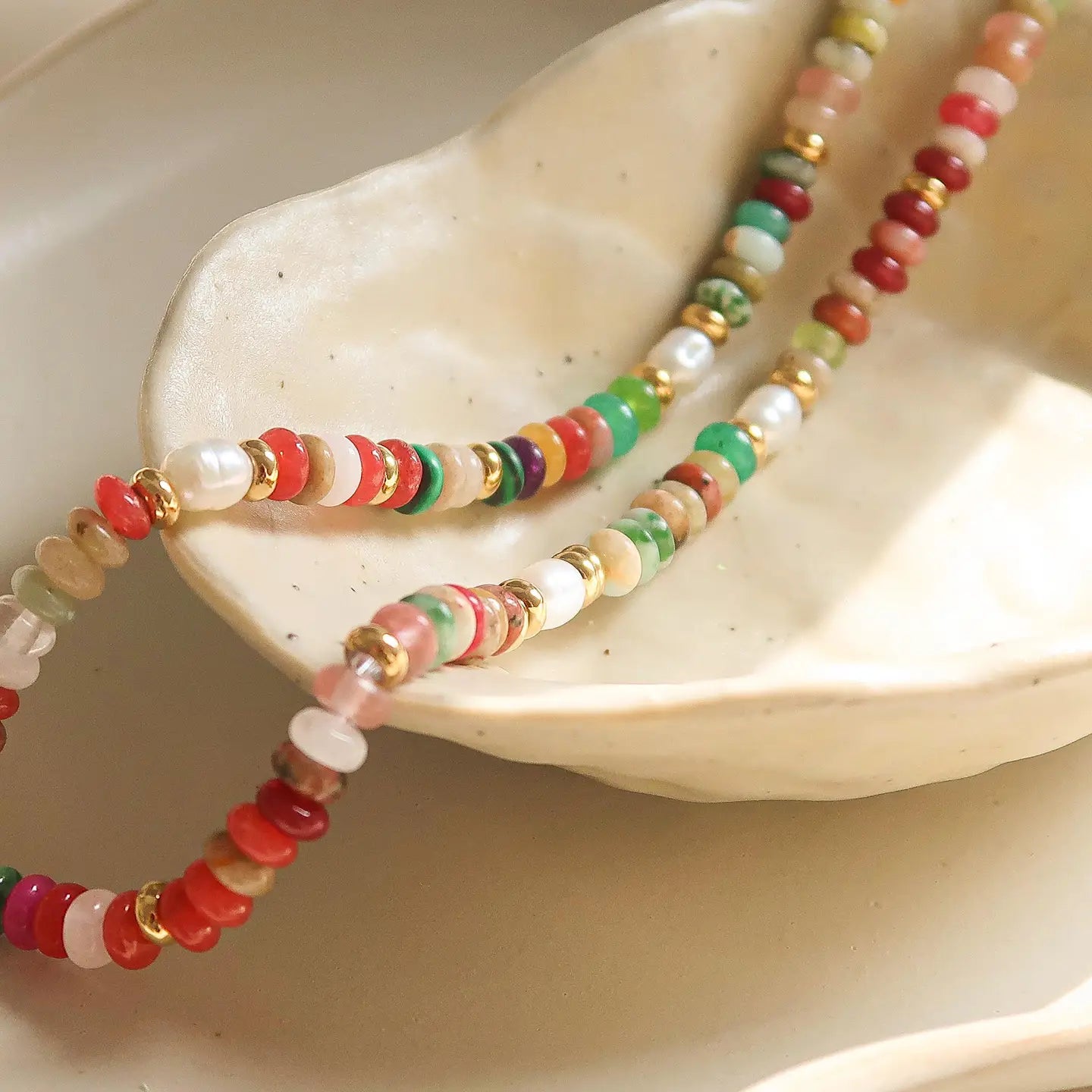 Bring a pop of sunshine to your jewelry collection with the Sunny Non-Tarnish Boho Color Beaded Necklace. Featuring a rainbow of vibrant beads accented with gold-toned spacers, this necklace is playful, chic, and effortlessly wearable. Designed for layering or wearing solo, it’s the perfect piece to brighten up any outfit while staying true to your boho spirit.