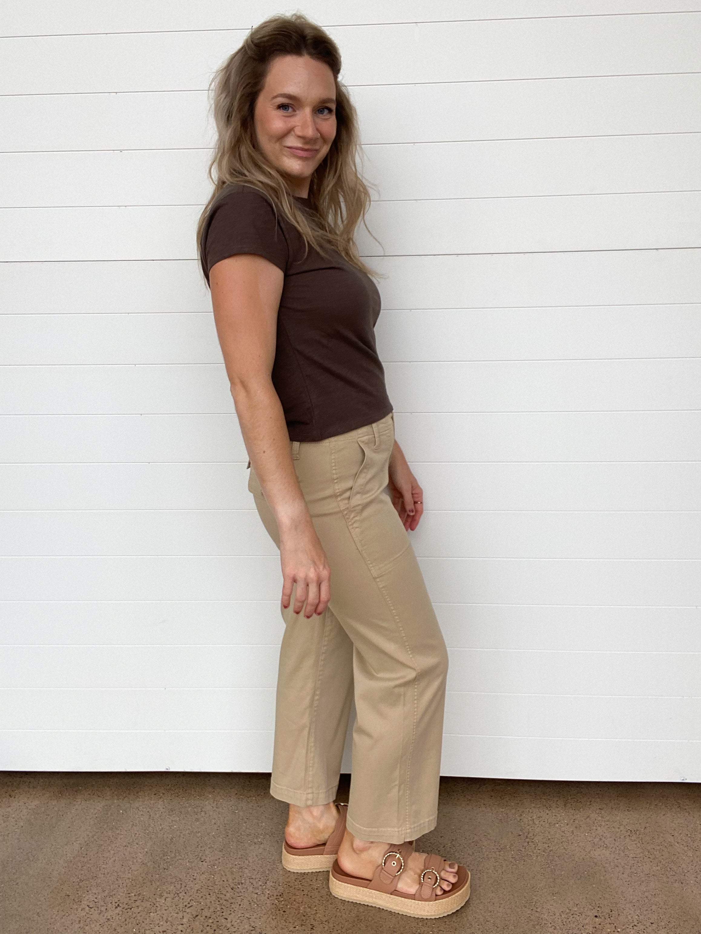 Liverpool Khaki Cargo Crop Wide Leg Pants | One:Nine Boutique