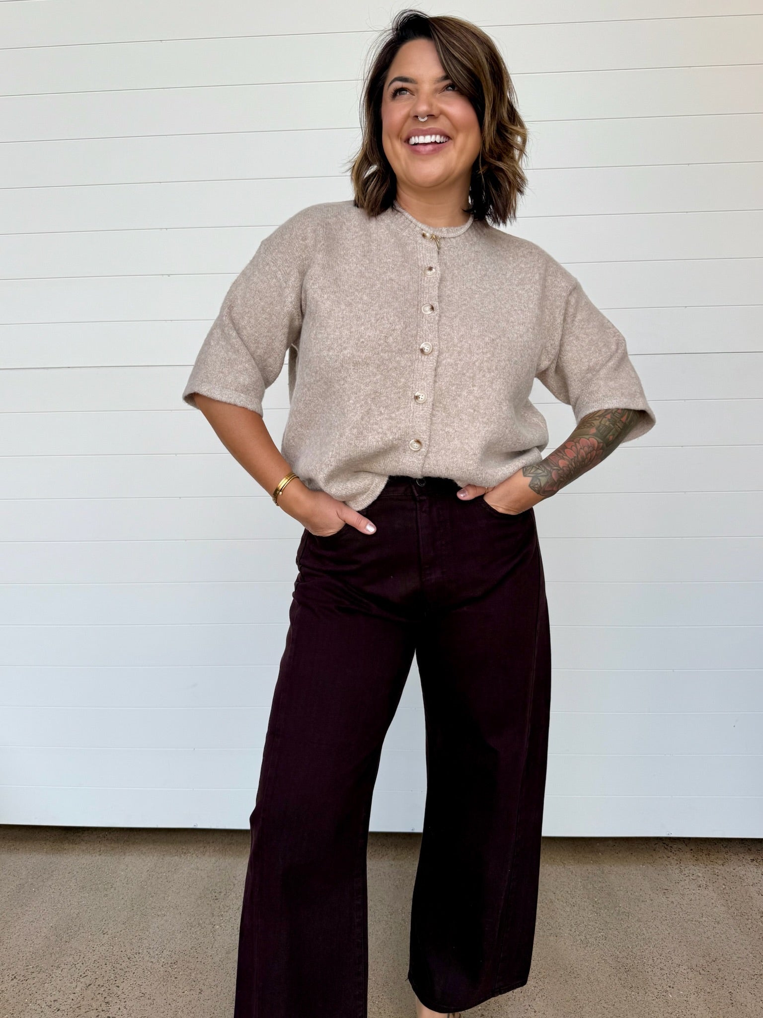 The Alyssa Half Sleeve Button Up Sweater – One:Nine Boutique