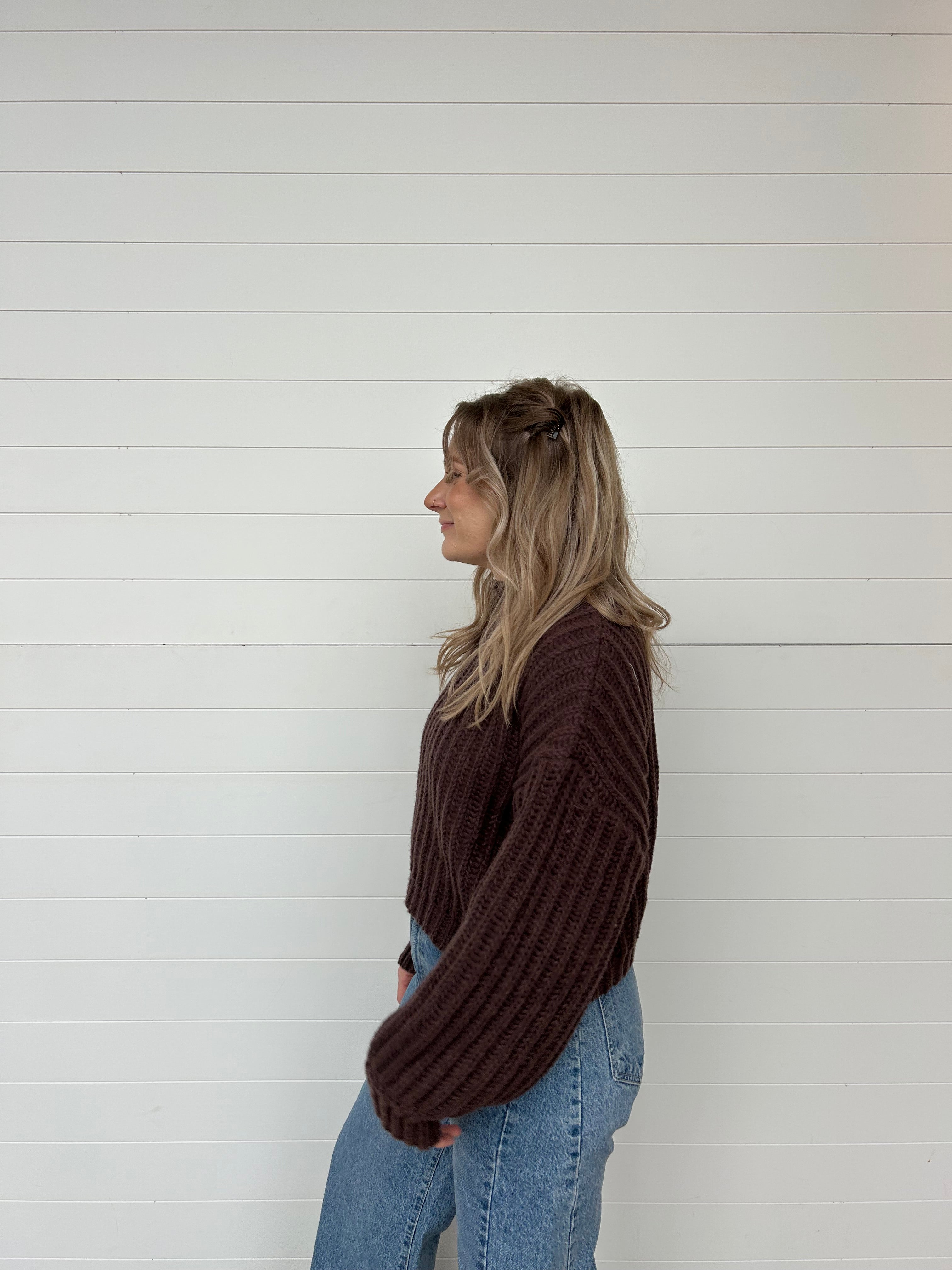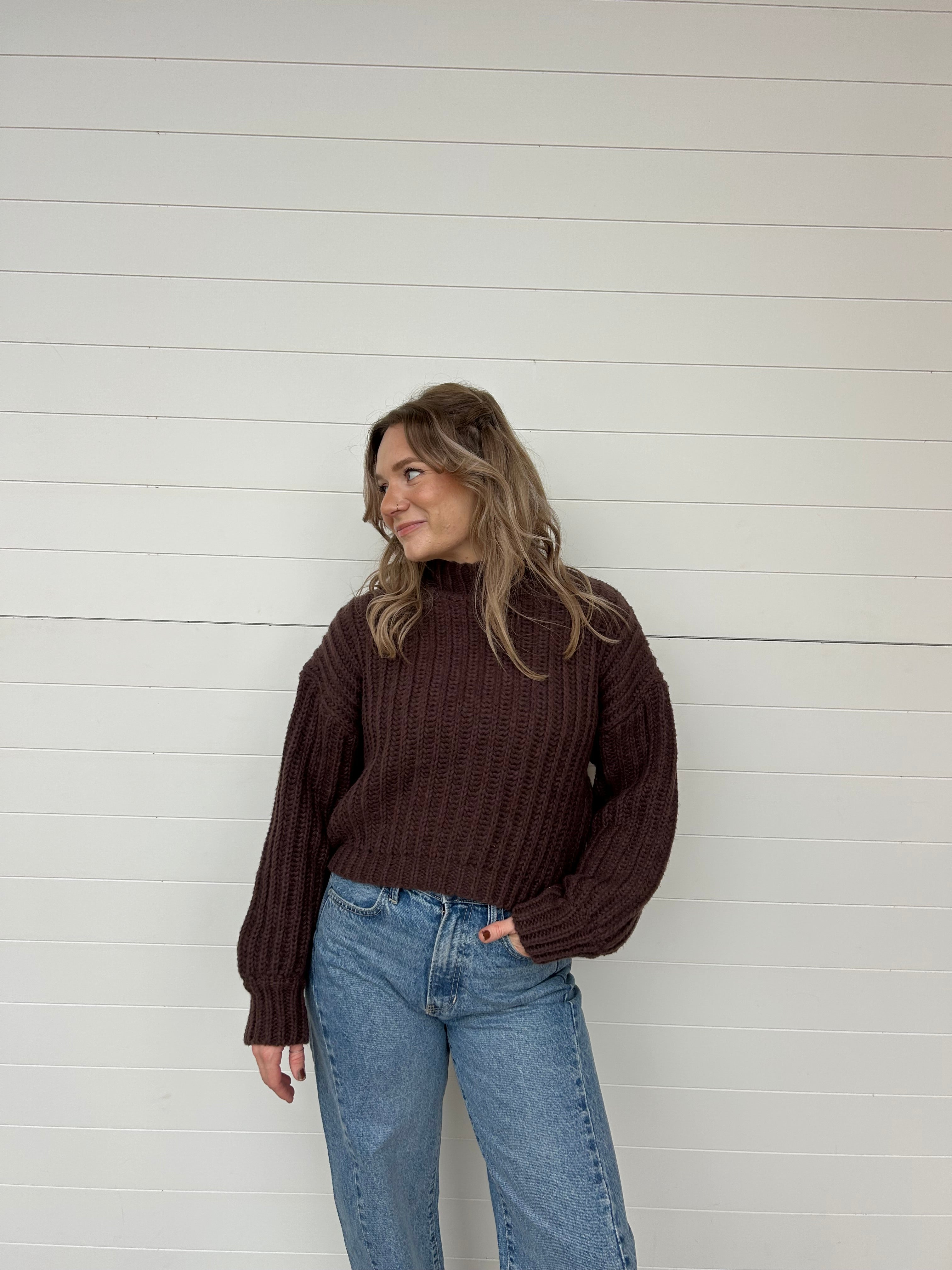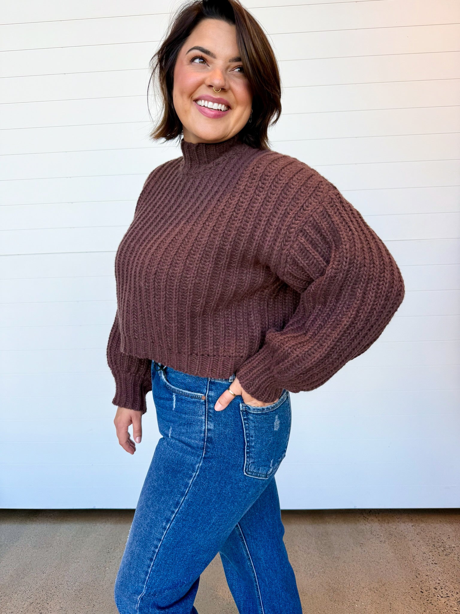 The Brecklyn Mock Neck Rib Sweater is your cozy-chic essential for the season. Designed with a chunky ribbed knit and a timeless mock neckline, this sweater blends effortless style with everyday comfort. The rich chocolate brown hue makes it versatile for pairing with denim, skirts, or layered over dresses, while the cropped length keeps the silhouette modern + fresh.