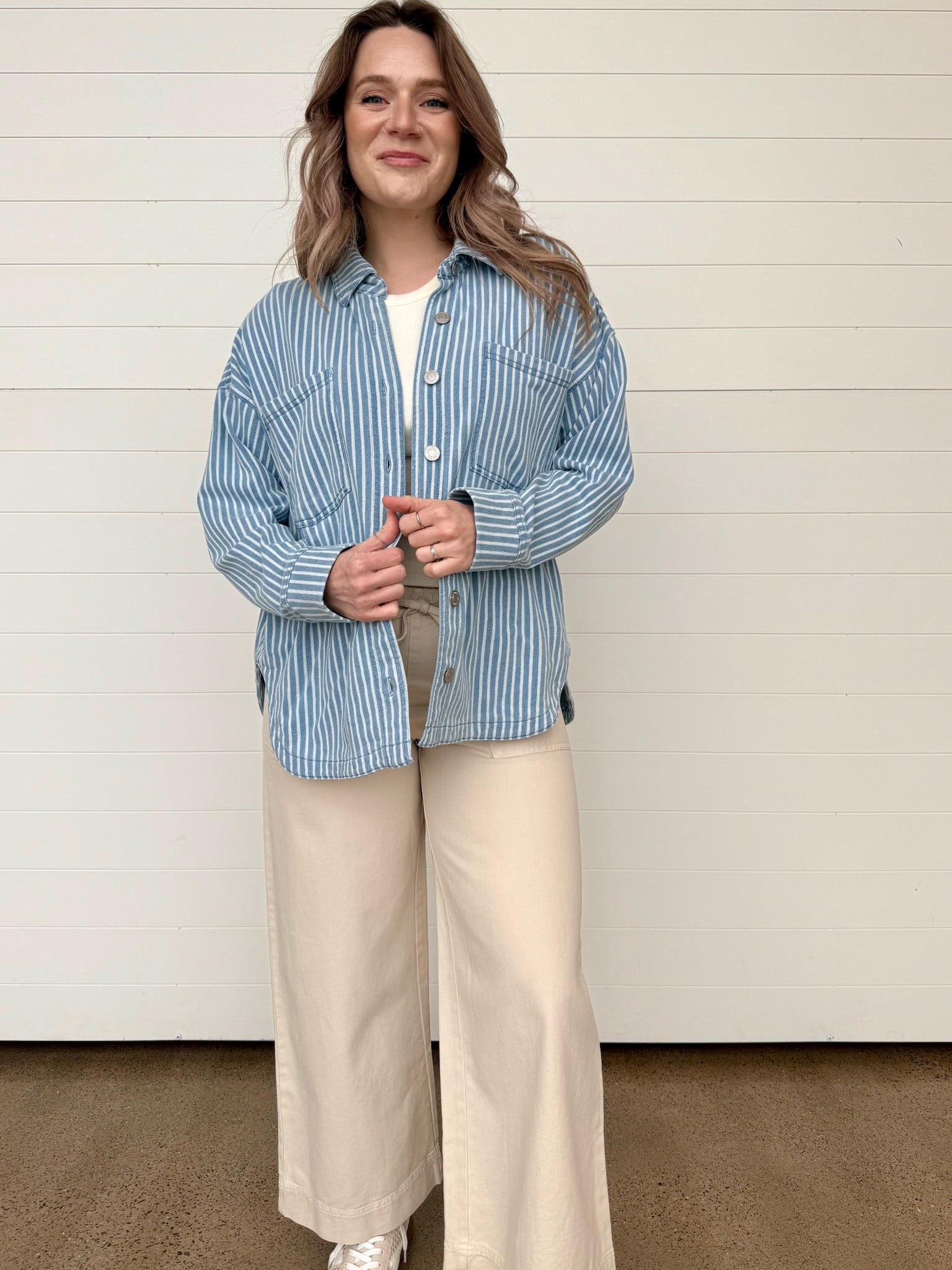 The All Day Knit Stripe Jacket is that effortless layer you’ll grab on repeat. Designed with a relaxed, easygoing fit + classic stripe pattern, this knit jacket gives you the polish of a jacket with the comfort of your favorite sweatshirt. Soft, breathable cotton blend fabric keeps it lightweight enough for all-day wear, while the button-front design makes it easy to style open or closed. Perfect for layering over tanks, tees, or lightweight knits—this one truly lives up to its name.