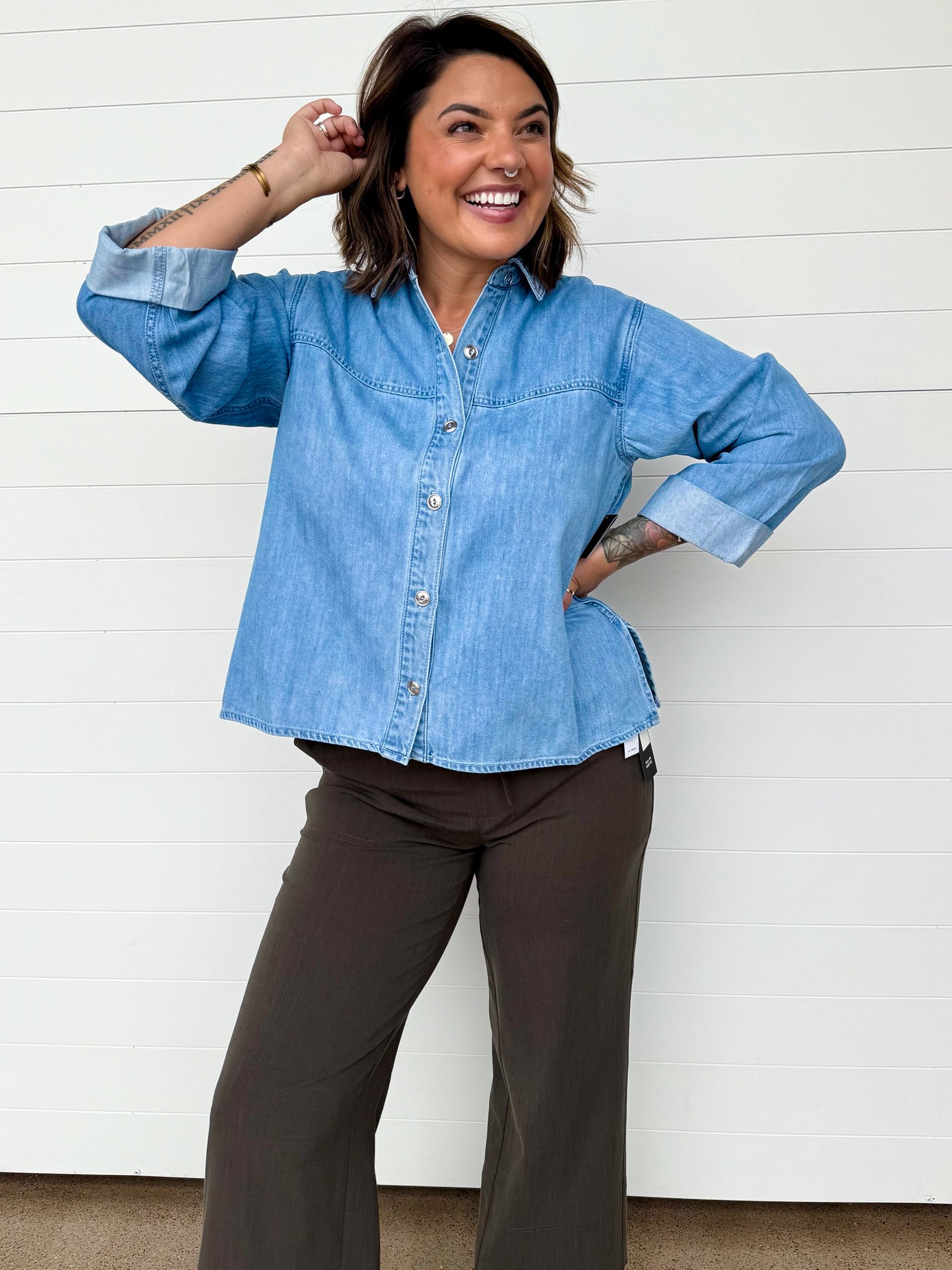 Say hello to your new favorite jacket—Selene is that effortlessly cool layering piece your closet’s been craving. This relaxed-fit denim barn jacket gives off major "chic meets classic" vibes with its medium wash + easy oversized silhouette.