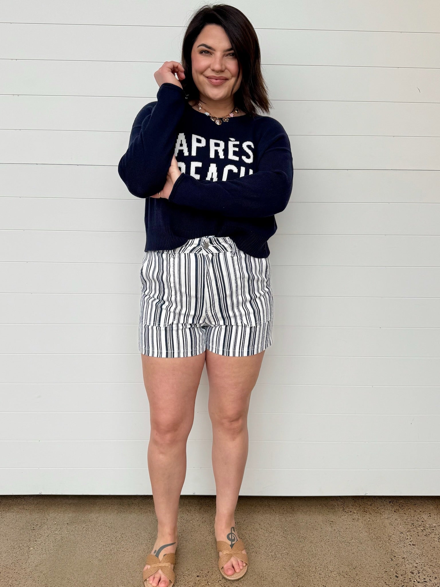 These are the shorts you’ll reach for when you want something easy, flattering + just a little elevated. The Jacey High Rise Striped Utility Short features a classic stripe with a utility-inspired feel that’s timeless but still fun. They’re structured enough to feel polished, yet comfy enough for all-day wear.