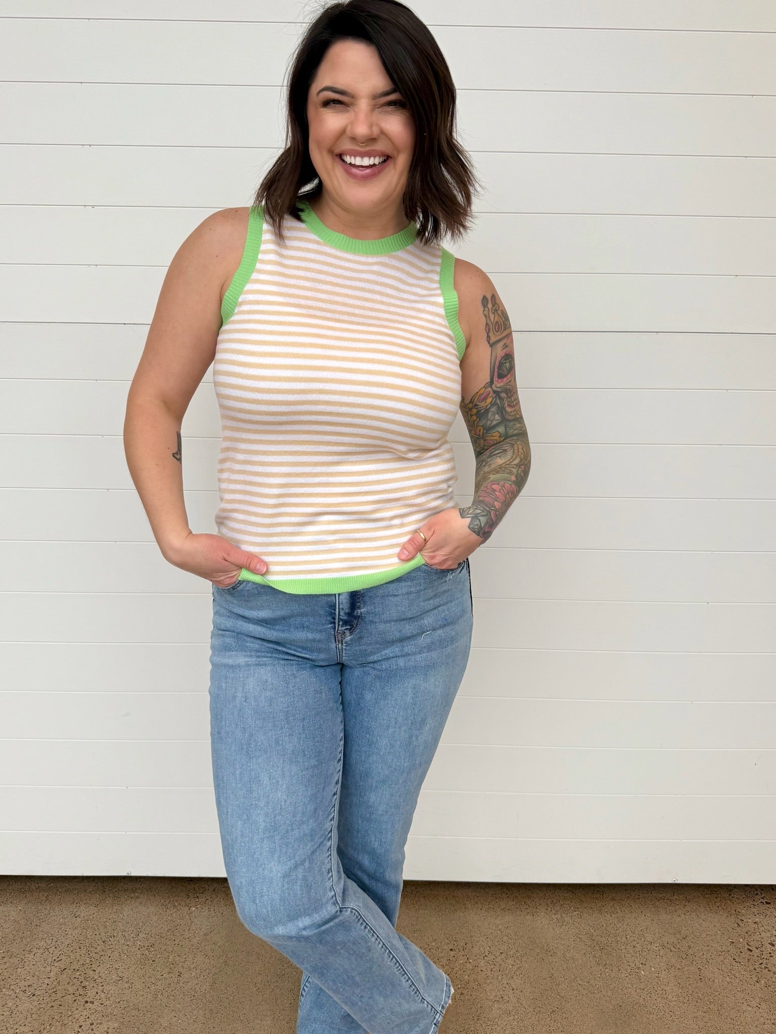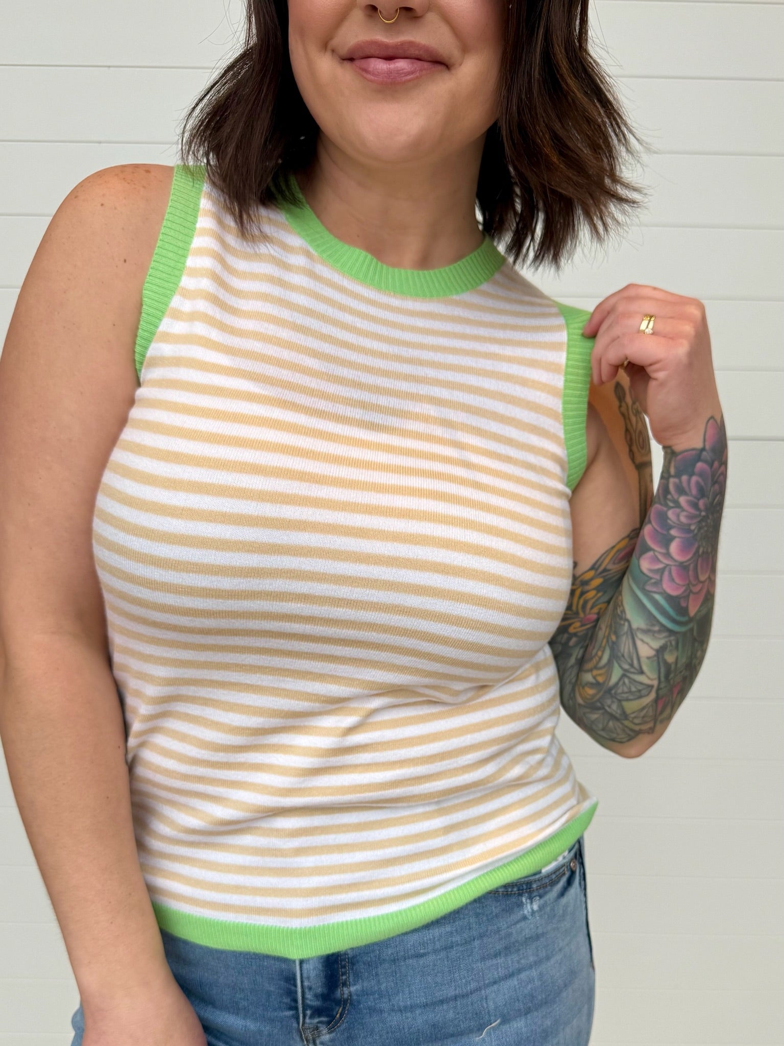 Natalie Contrast Striped Sweater Tank for Women | Lightweight Knit Sleeveless Top True to Size | One:Nine Boutique