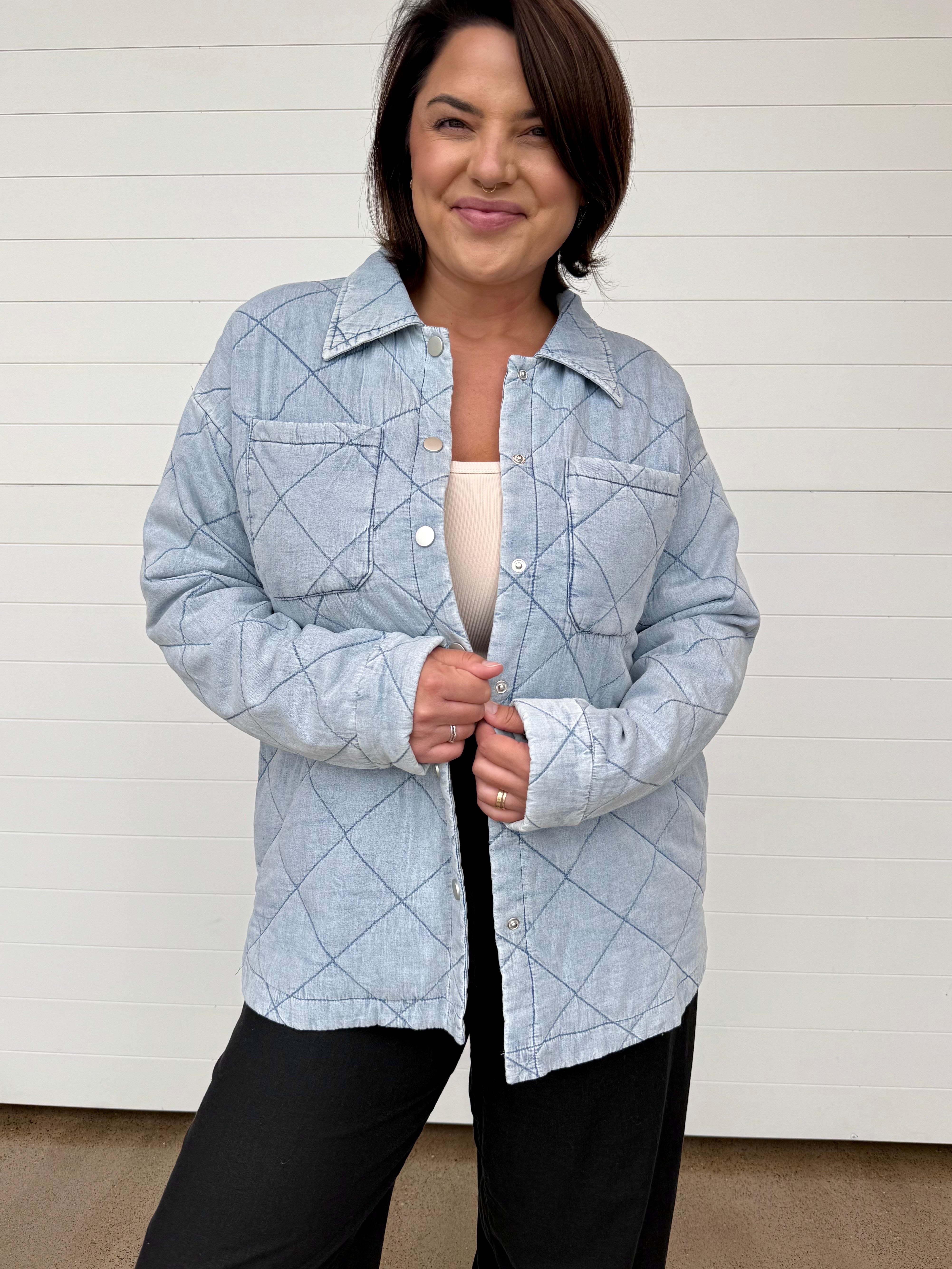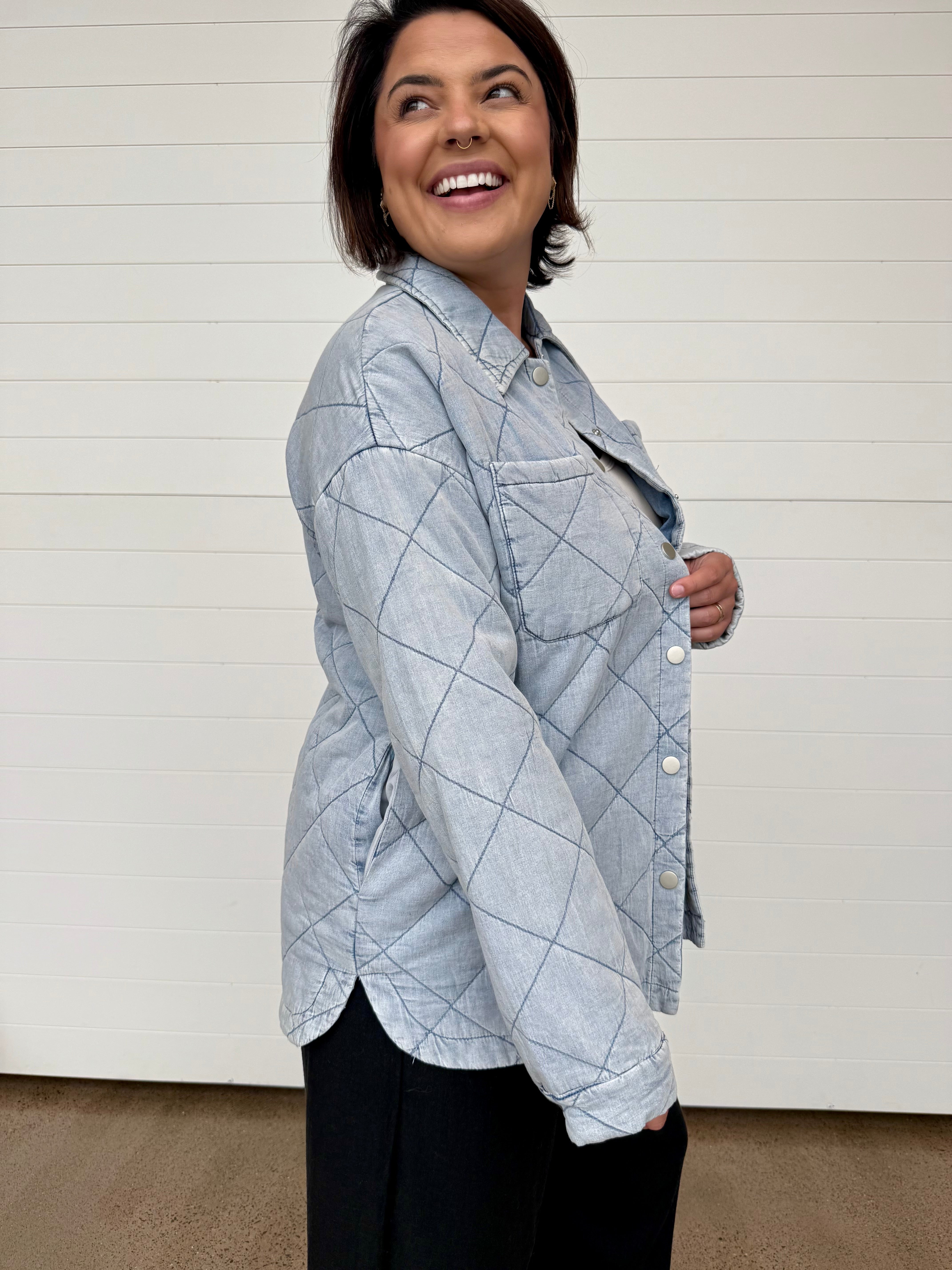 Meet your new go-to layer for cozy + chic style. The Mattie Quilted Tencel Jacket blends casual comfort with an elevated touch, making it a must-have in your Fall-to-Spring wardrobe. Designed with a midweight feel, this jacket is perfect for throwing on over your everyday looks without feeling bulky. The diamond quilt stitching adds texture + structure, while the soft tencel fabrication gives it a lived-in, effortless vibe.