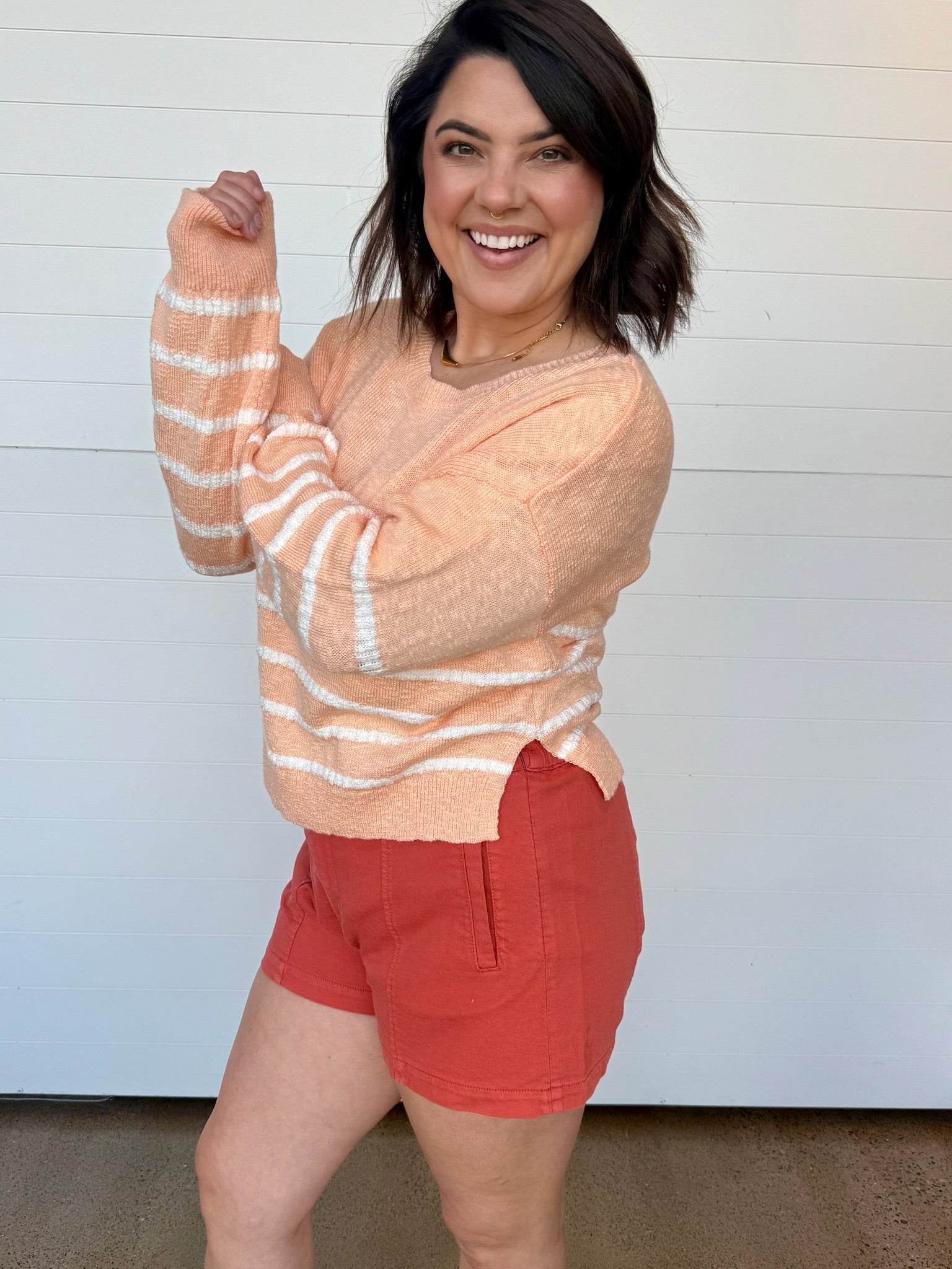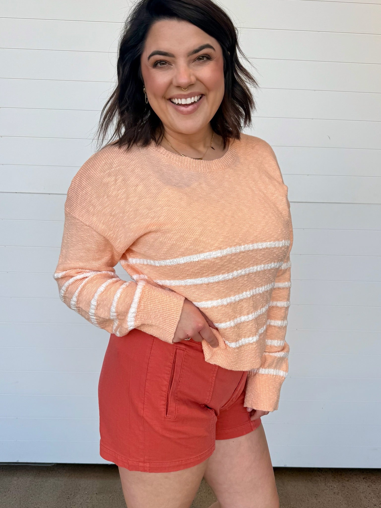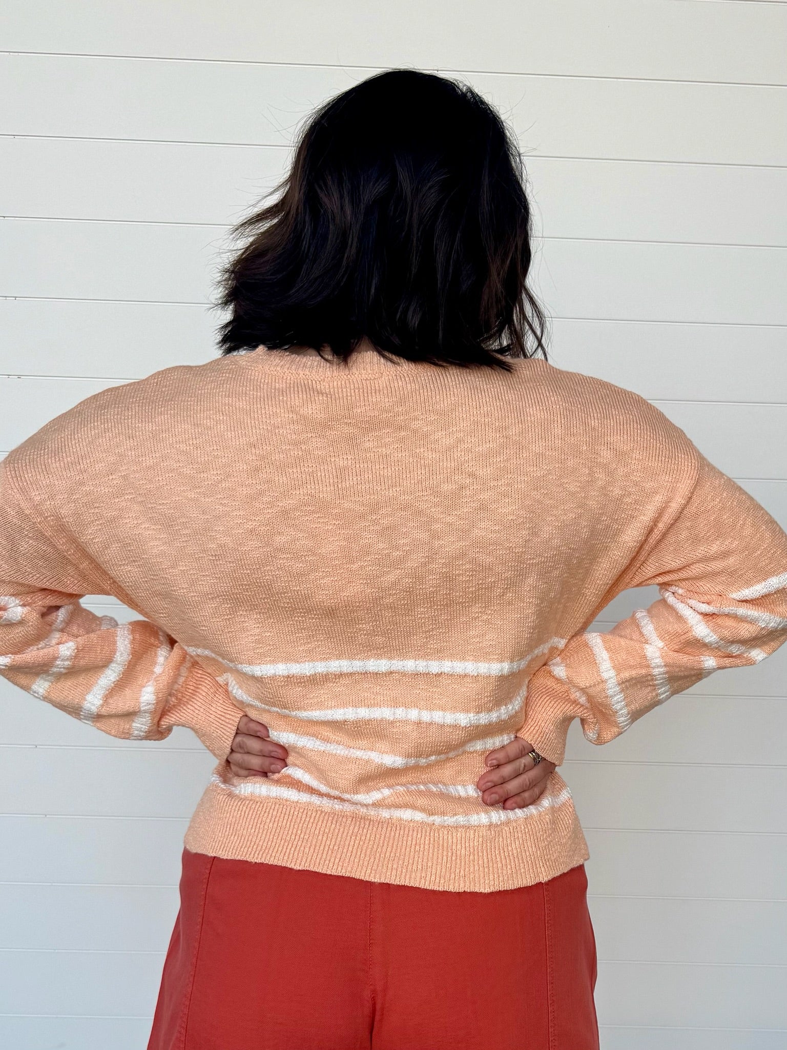 Meet your new everyday knit—easy, classic, and just the right amount of cozy. The Saylor Striped Sweater is made for those effortless throw-on days when you want to look put-together without even trying. Featuring a timeless stripe pattern + a relaxed-but-structured regular fit, it pairs seamlessly with your favorite denim, wide-leg trousers, or layered over a collared top for a touch of preppy charm.