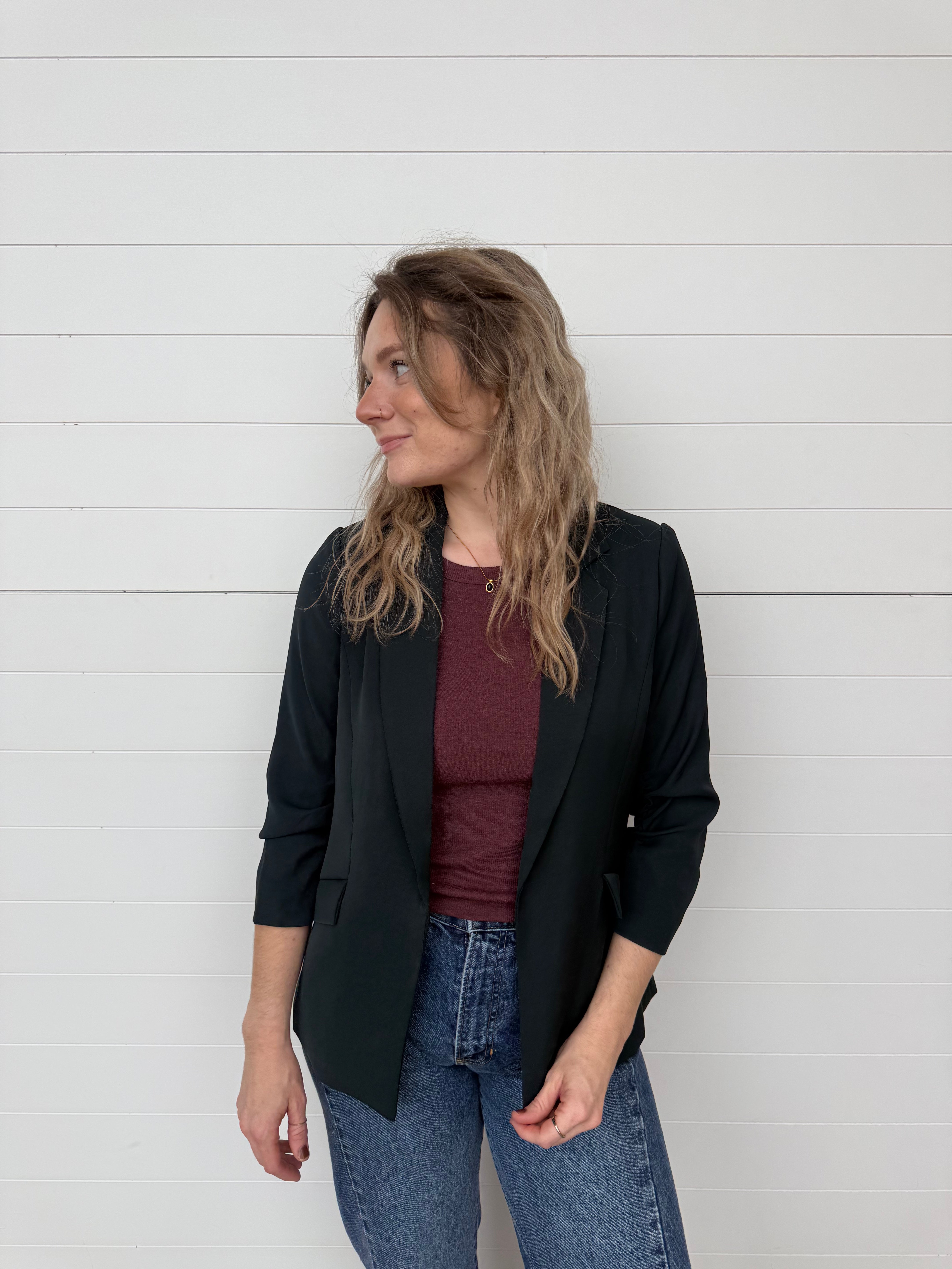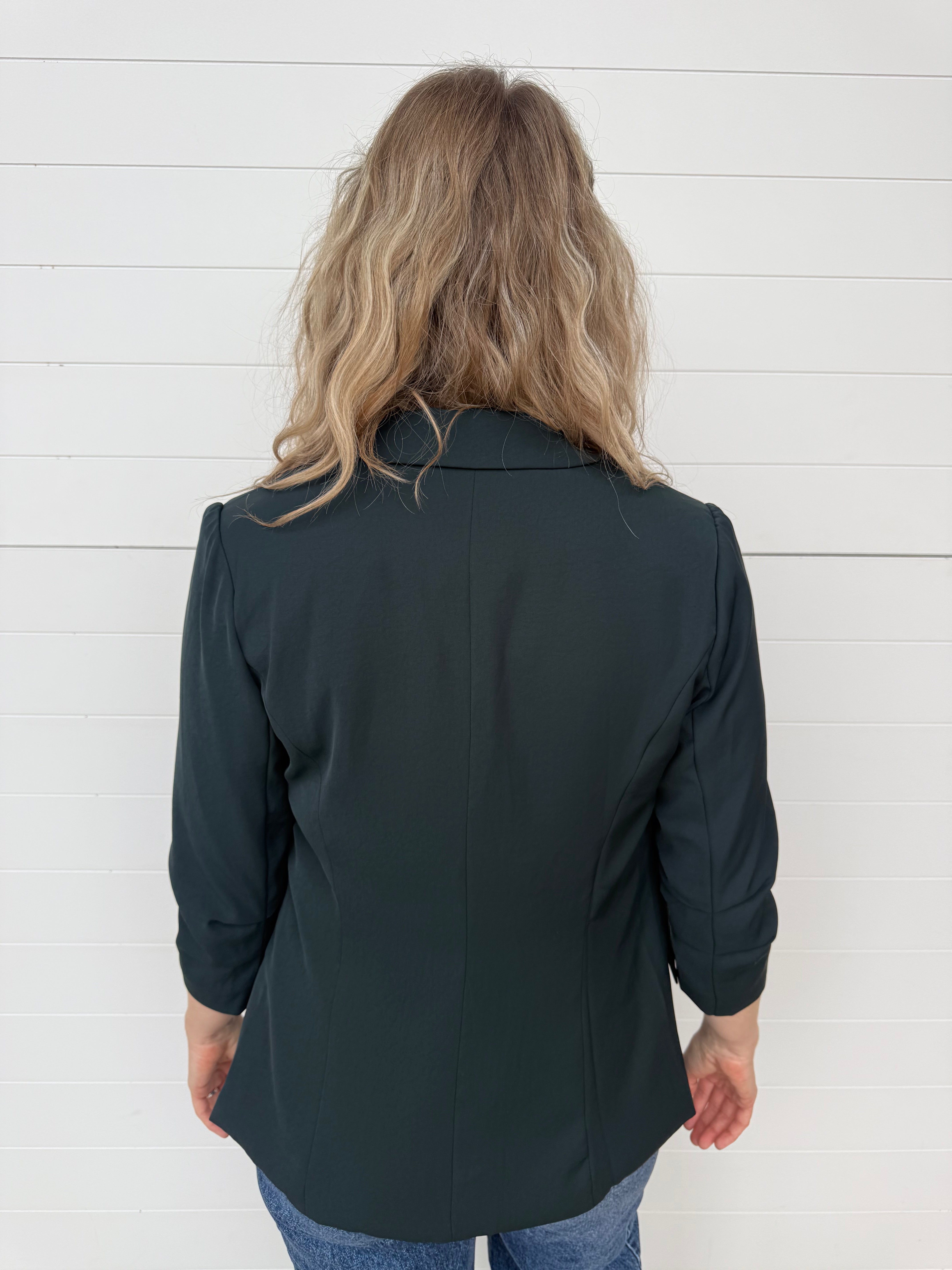 Polished. Timeless. Effortlessly chic. The Valentina Ruched Sleeve Blazer brings a modern twist to classic tailoring with its sleek structure + feminine ruched sleeve detail. Designed with a subtle stretch for comfort and a gorgeous floral lining that adds a hidden pop of personality, this blazer transitions seamlessly from desk to dinner. Pair it with trousers for a sharp, put-together look or layer it over denim for an elevated casual vibe.