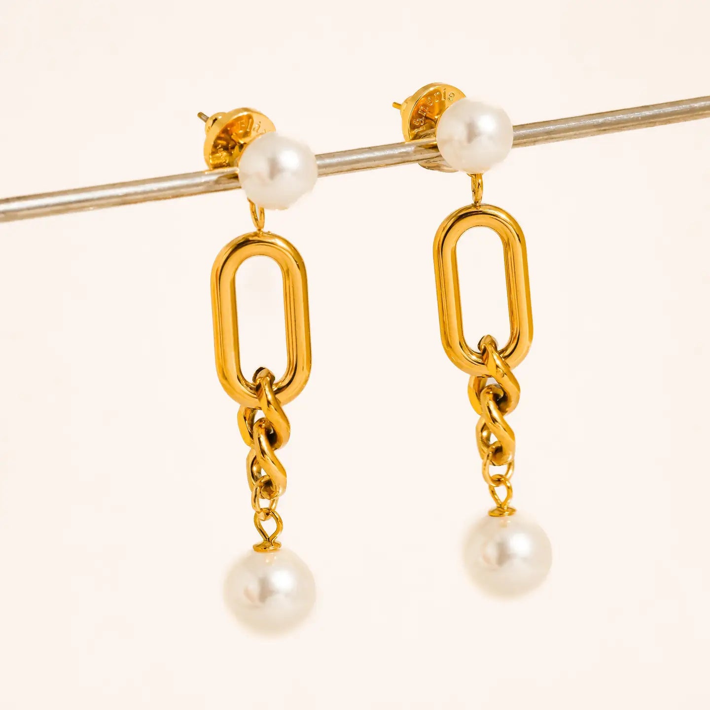 Where modern edge meets classic charm ✨ The Lyrisme Drop Earrings blend timeless pearls with bold gold chain links for a look that’s equal parts feminine + fashion-forward. Lightweight yet statement-making, these earrings instantly elevate any outfit — from workday chic to date night glam.