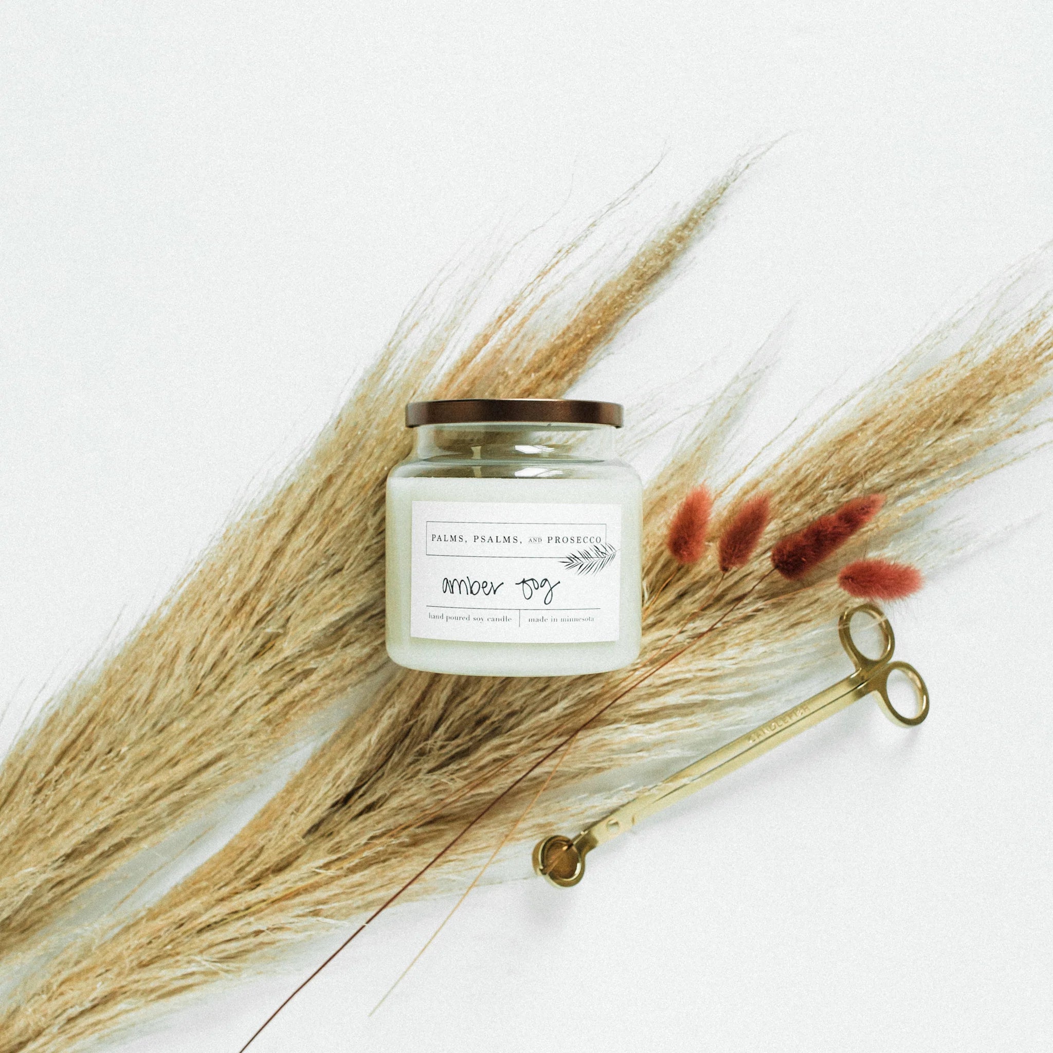 From Amanda at Palms, Psalms & Prosecco: "Lots of requests for an amber candle so I decided to make a rich, luxury, and sensual amber candle for you all! Notes of plum, amber, jasmine, musk, and citrus make this amber candle cozy enough to burn all year 'round!