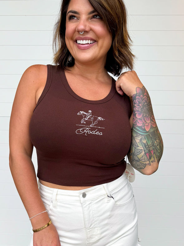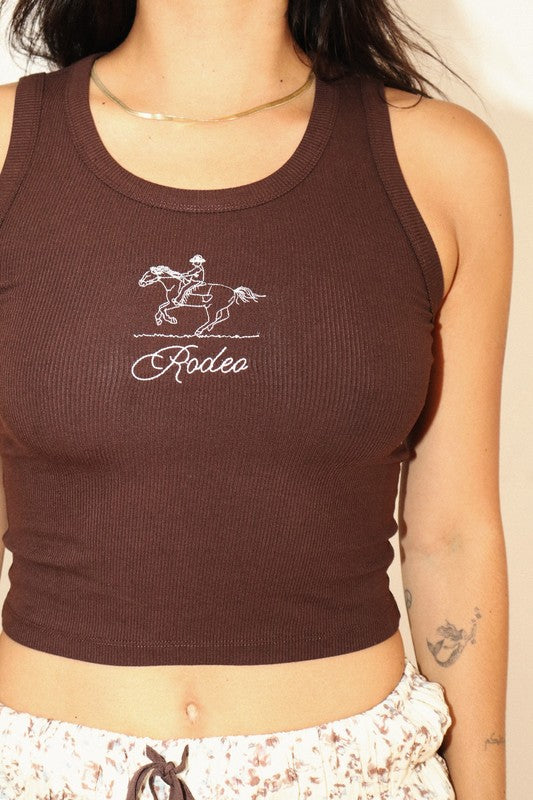 Western vibes, but make it chic. The Winona Embroidered Cowboy Graphic Tank is serving up the cutest kind of cowgirl energy. Featuring a fitted, cropped silhouette in a soft ribbed knit, this sleeveless tank is made for styling. The star of the show? A trendy embroidered cowboy design front + center—because Western-inspired everything is so in right now.